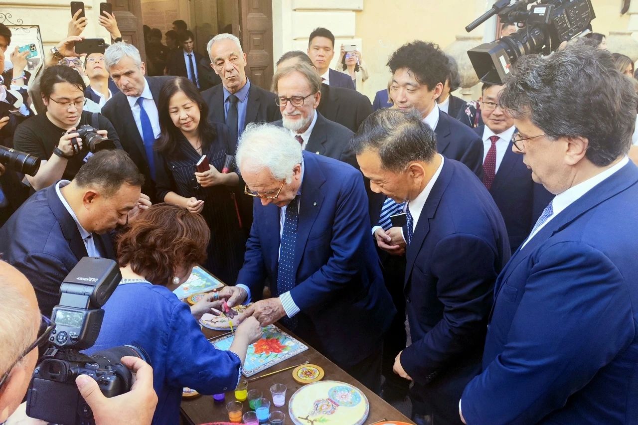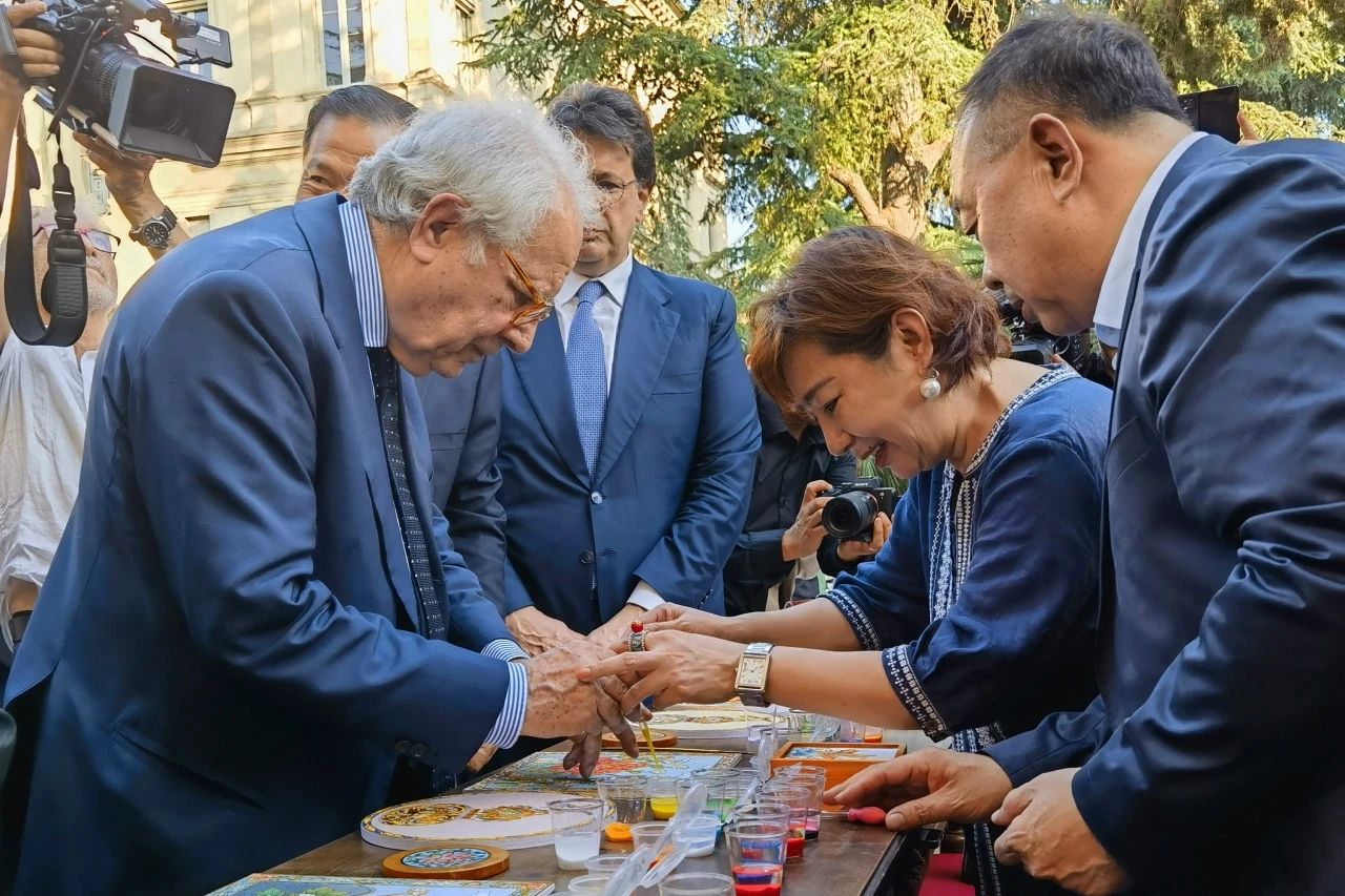 展览现场,甄选自总台综合频道《非遗里的中国》的展品以及巧夺天工的非遗技艺展示,让驻足欣赏的中意嘉宾赞叹不已。