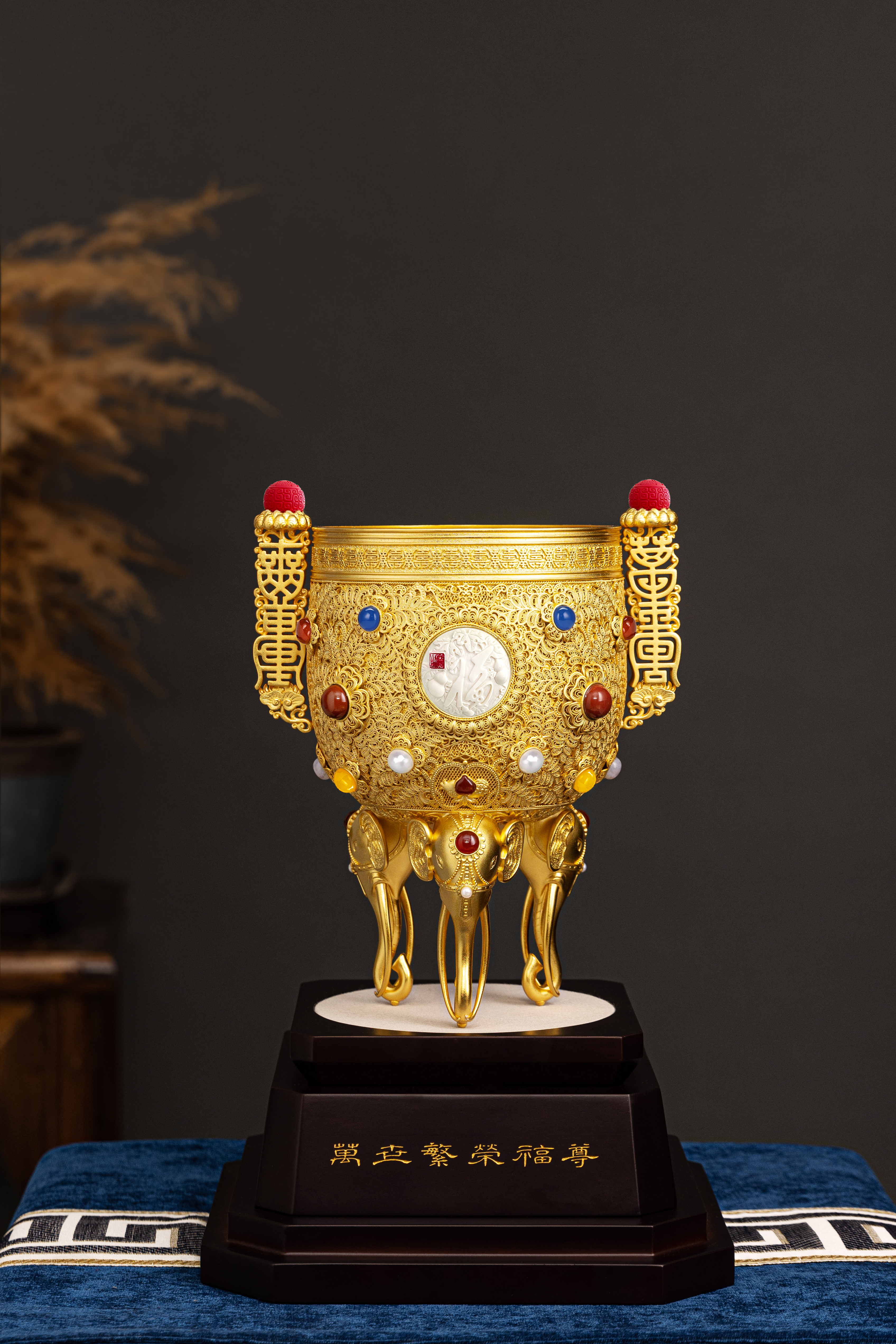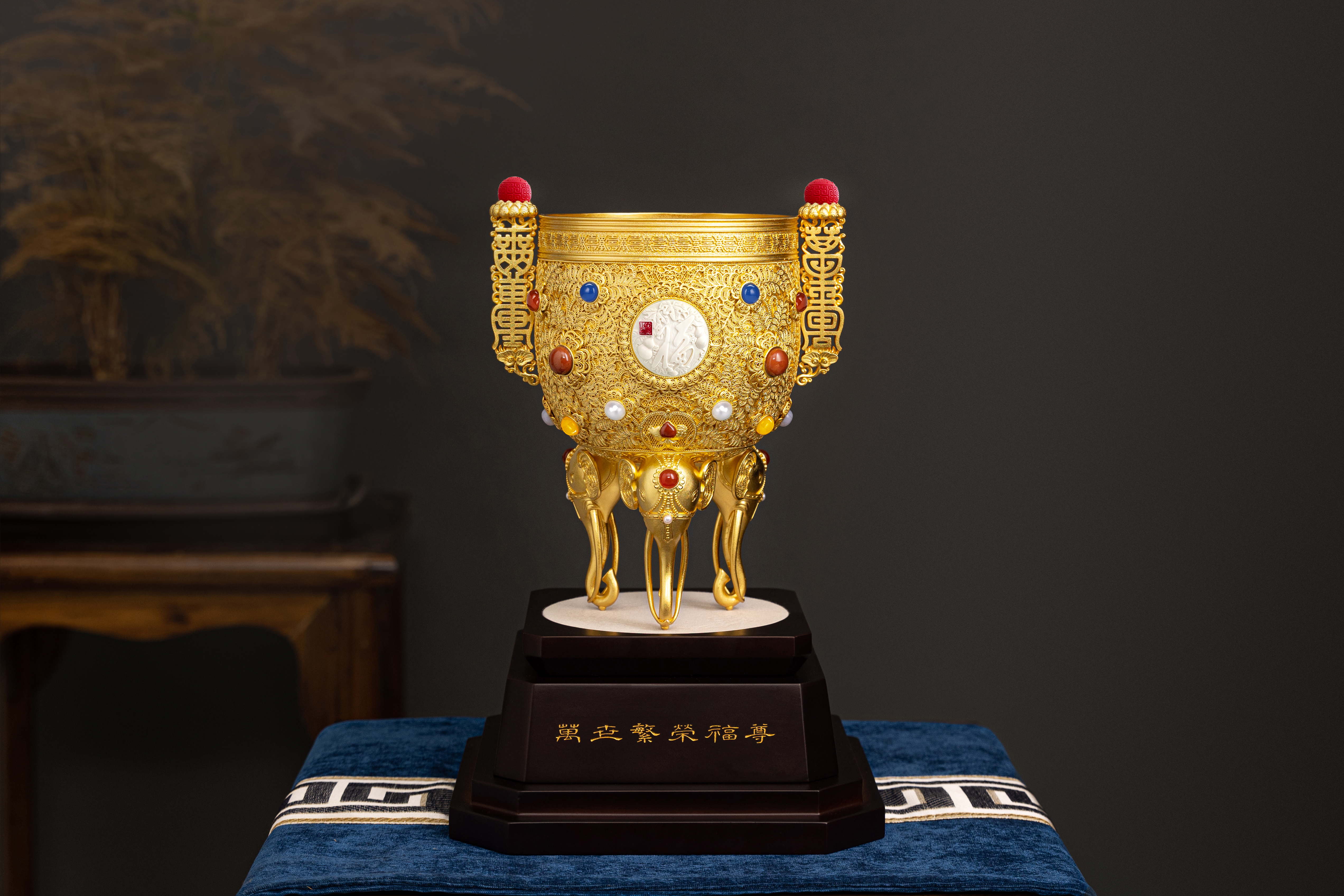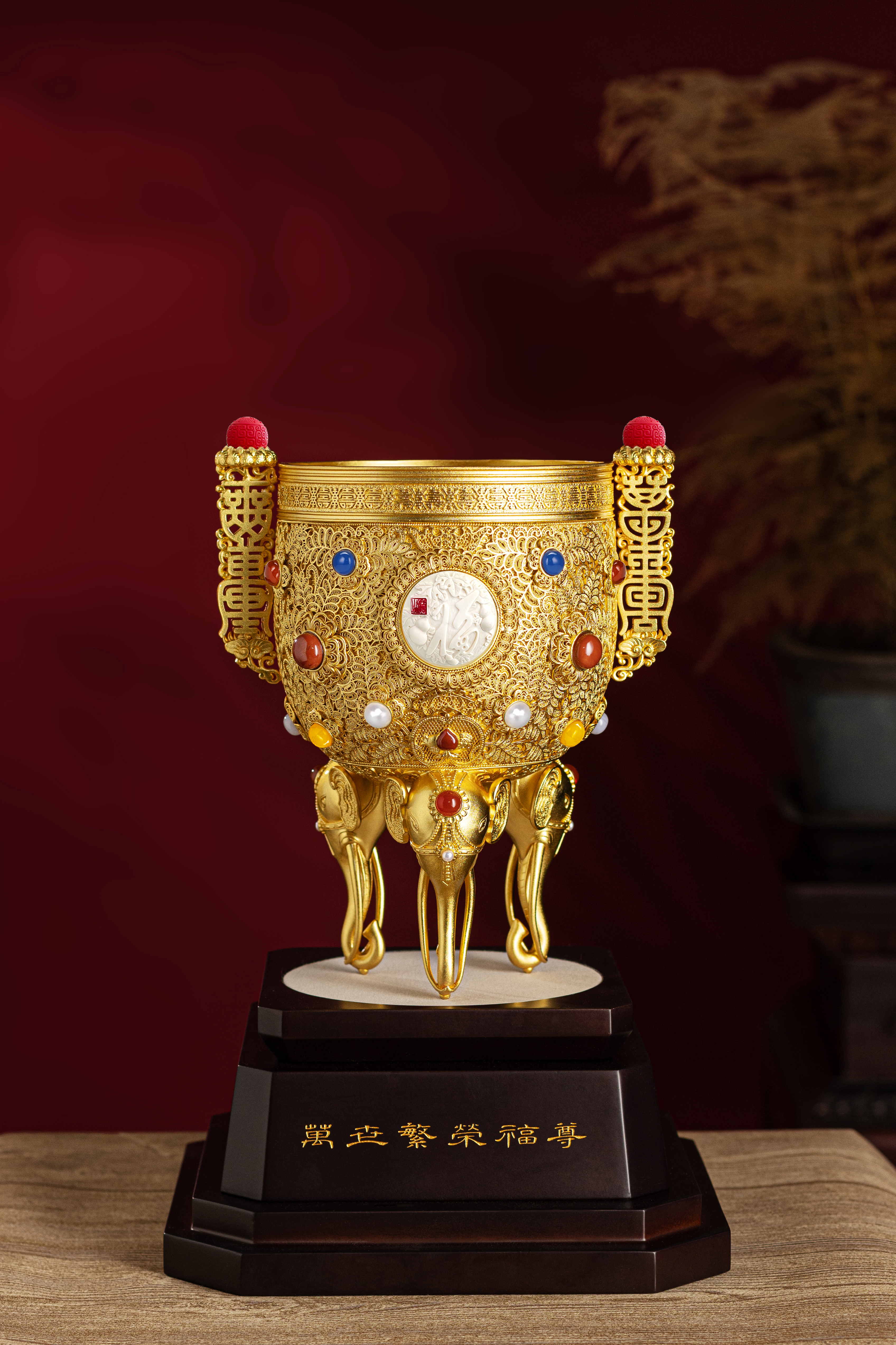 王树文和袁长君两位国礼制作大师,精心铸就《万世繁荣》福尊。以花丝之锦绣,展盛世之繁荣——万根花丝,万世繁荣,福运绵长。