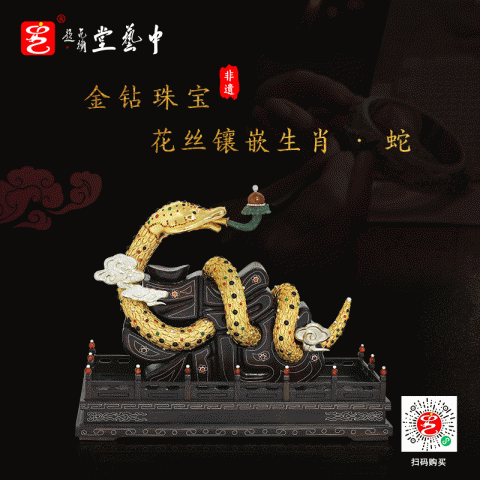 首页 > 花丝镶嵌丨苏绣 > 花丝镶嵌 > 王树文 > 【中藝堂】王树文花丝镶嵌十二生肖·蛇特色年货家居摆件