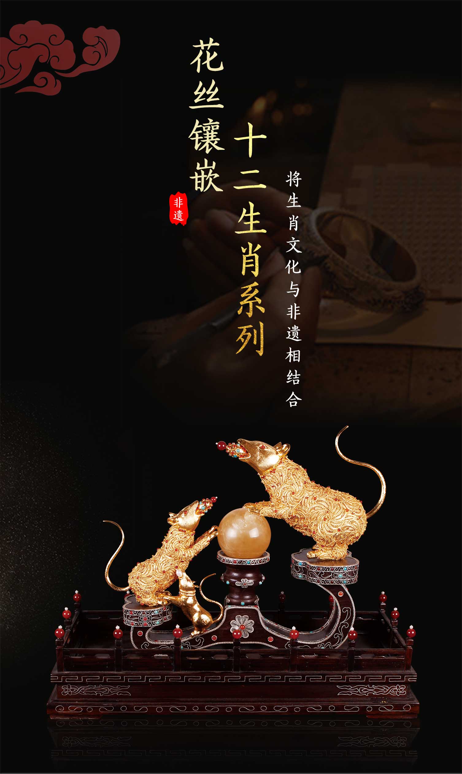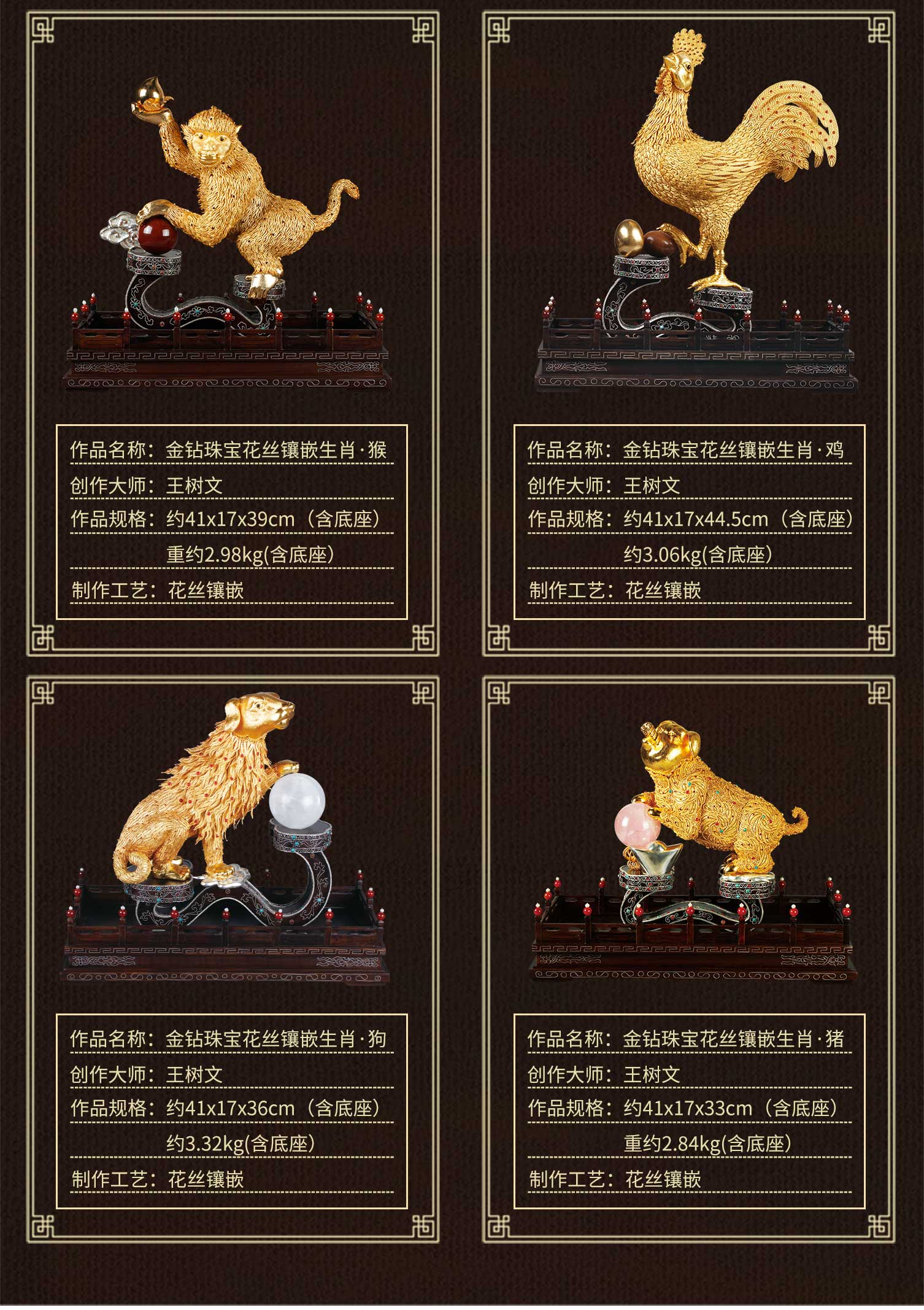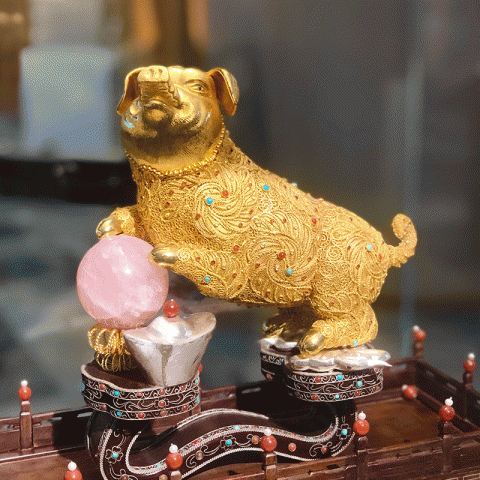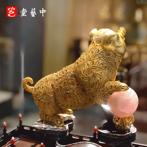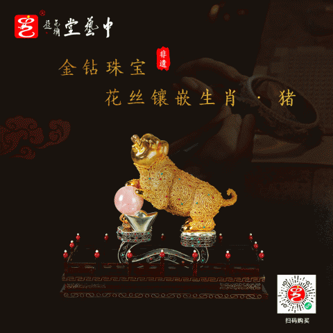 首页 > 花丝镶嵌丨苏绣 > 花丝镶嵌 > 王树文 > 【中藝堂】王树文花丝镶嵌十二生肖·猪特色年货家居摆件