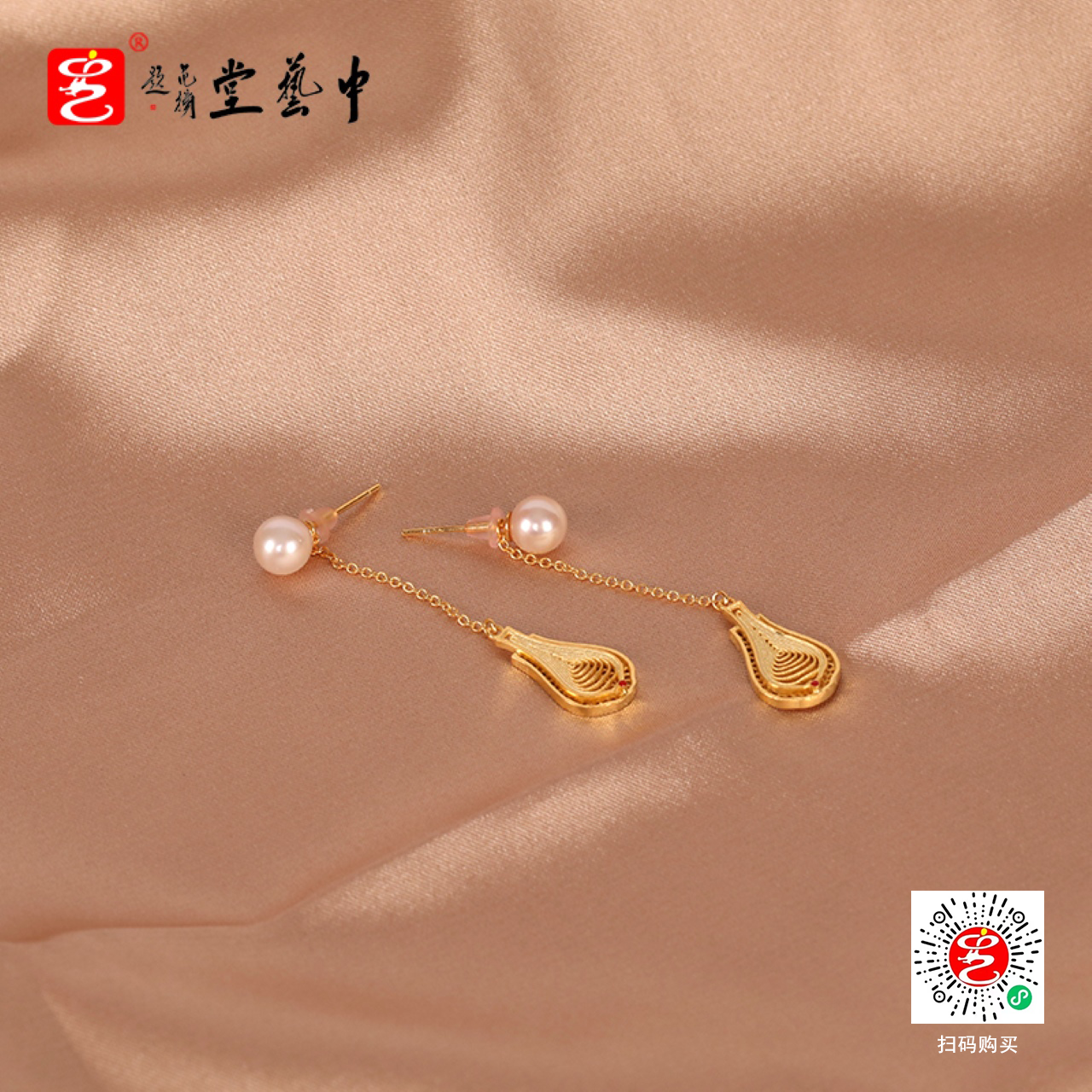 首页 > 花丝镶嵌丨苏绣 > 花丝镶嵌 > 【中藝堂】 花丝镶嵌首饰 玉净瓶耳坠