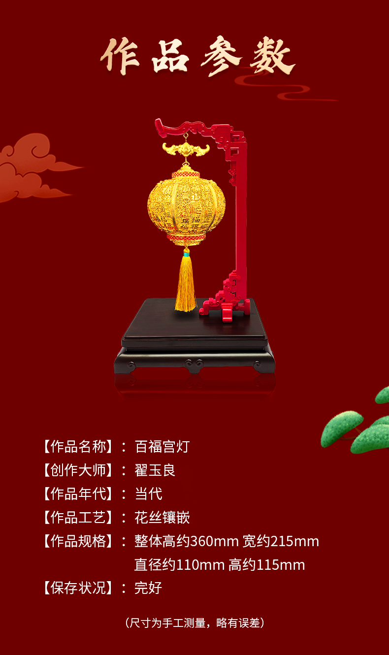 翟玉良亲铸|故宫同源《百福宫灯》 999足金丝·可转可藏|天安门灯笼宗师再造传世孤品!​