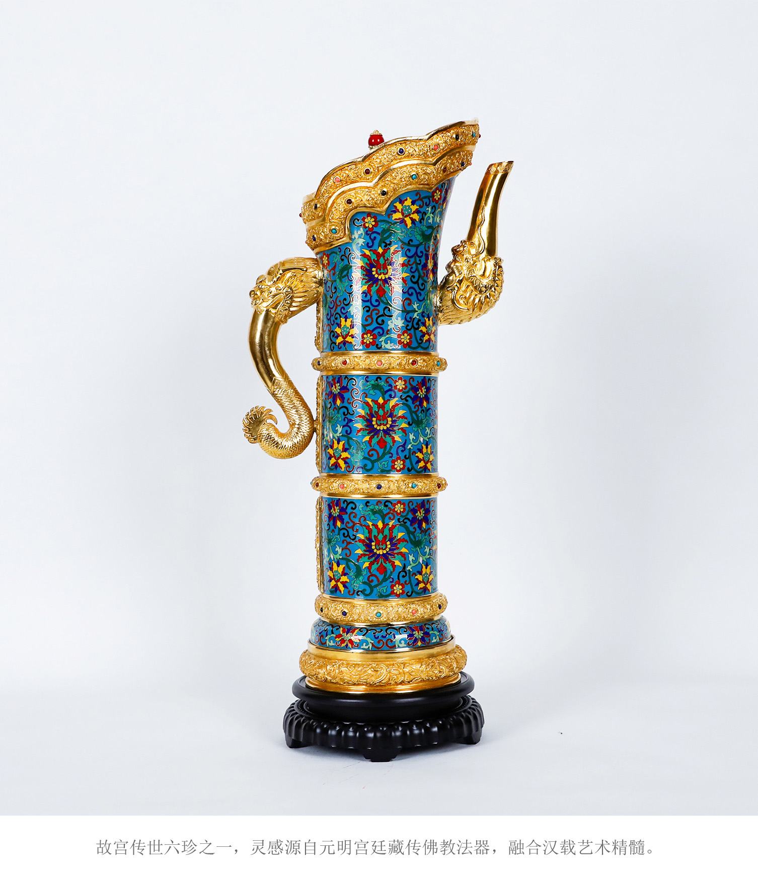 首页 > 景泰蓝丨玉器 > 景泰蓝 > 霍铁辉 > 故宫传世六珍·霍铁辉亲铸 | 景泰蓝《多穆壶》 | 汉藏艺术融合的皇家法器​