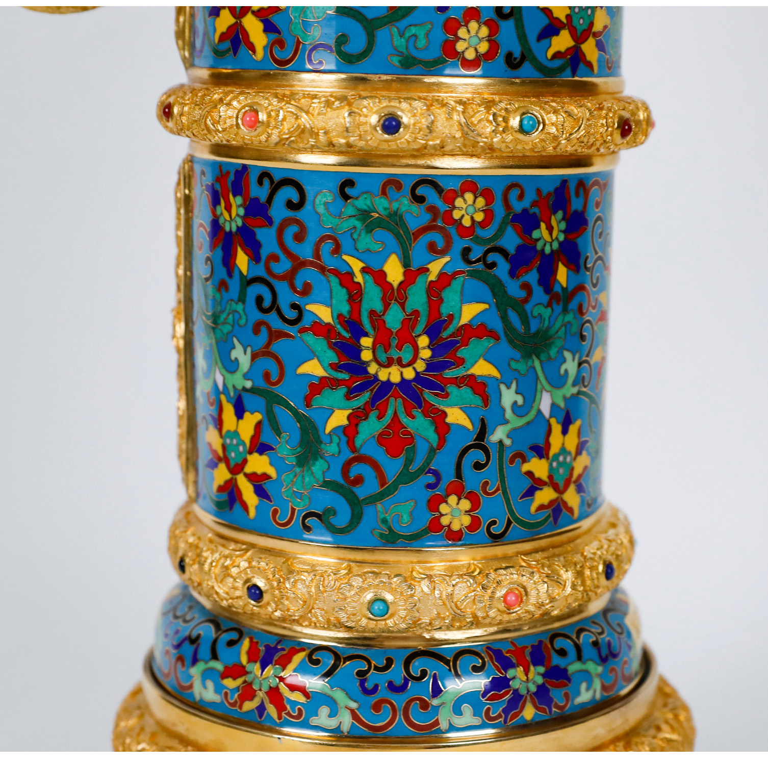 故宫传世六珍·霍铁辉亲铸 | 景泰蓝《多穆壶》 | 汉藏艺术融合的皇家法器​