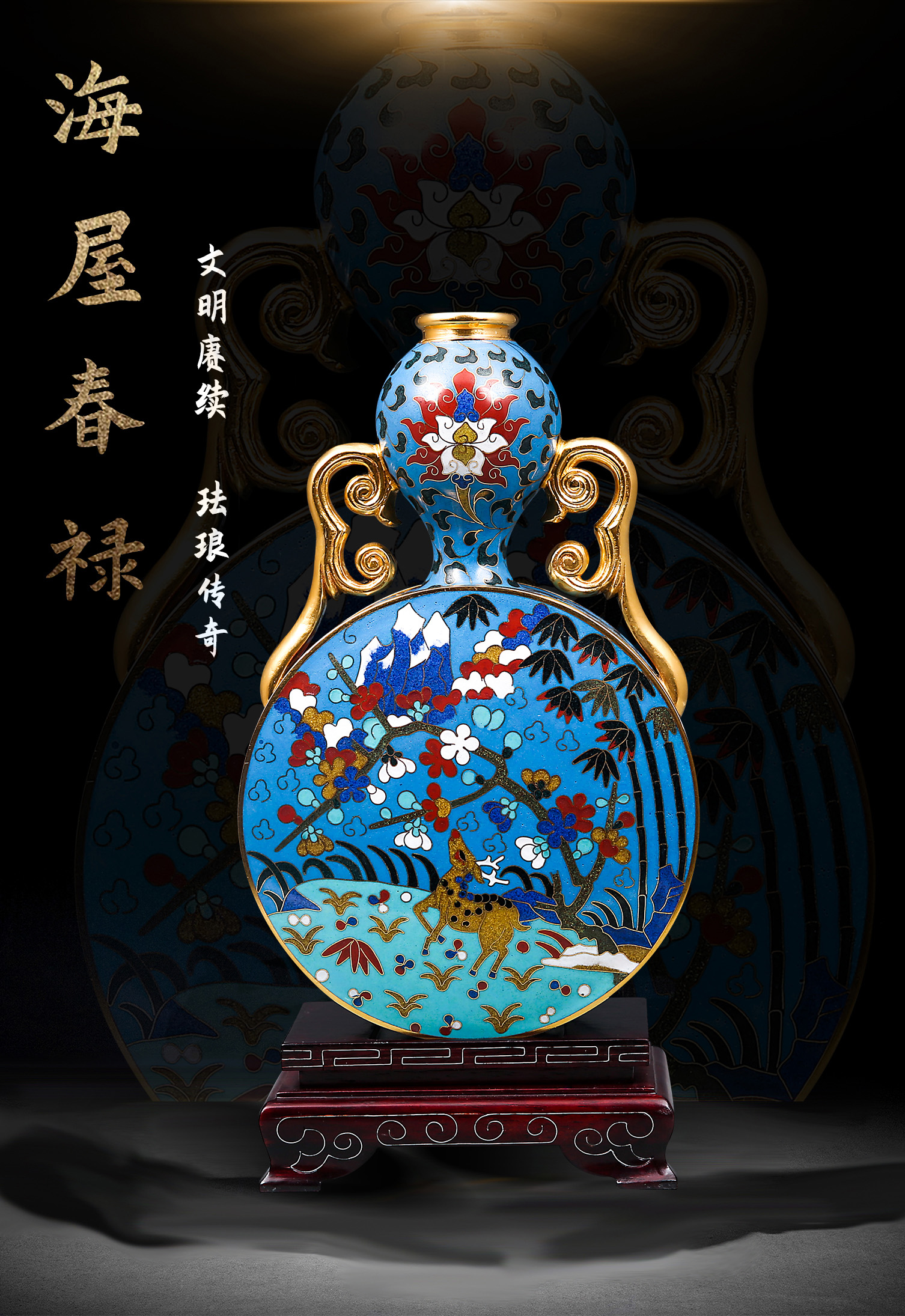 台北故宫同源再造 | 霍铁辉景泰蓝《海屋春禄》 | 双面吉祥,福寿同春​