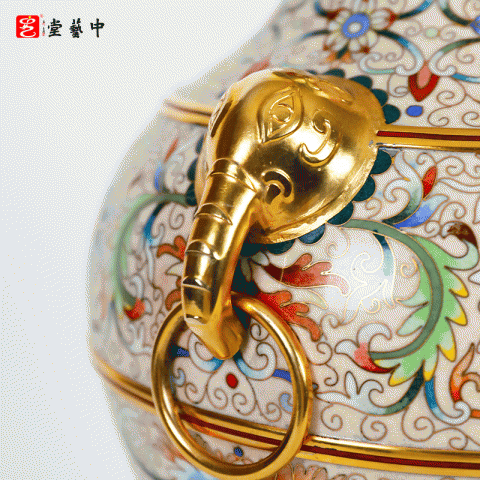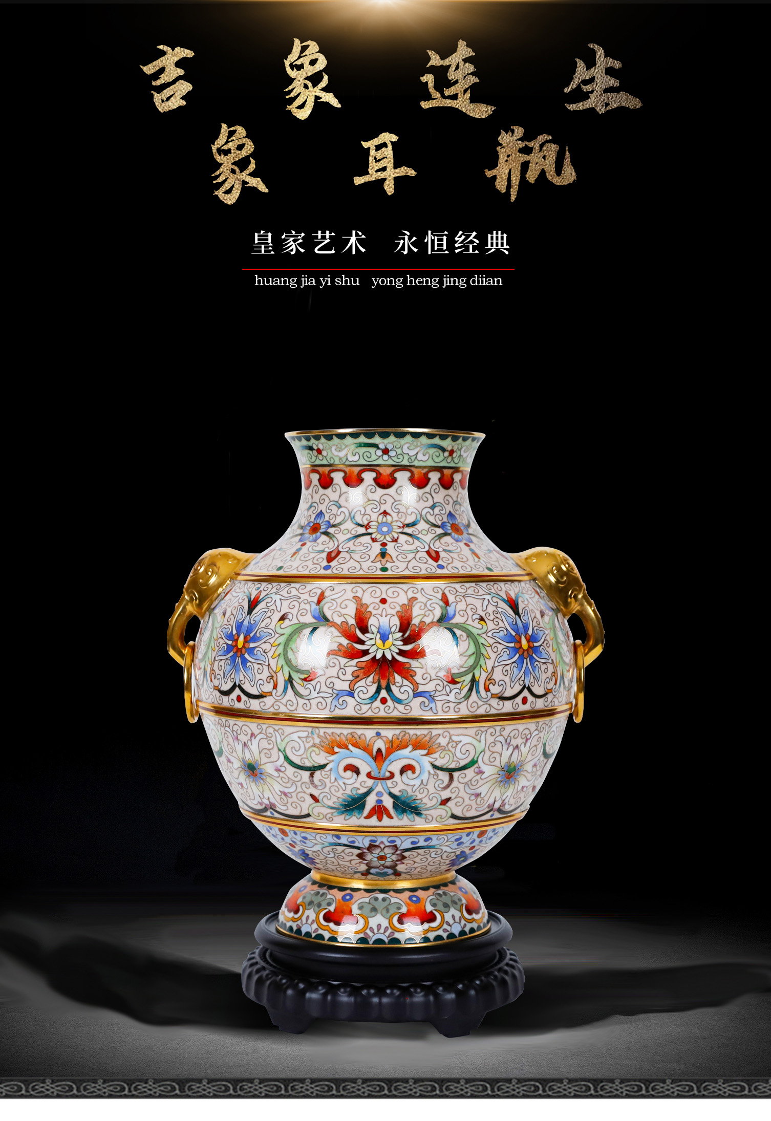 故宫乾隆遗珍再造·霍铁辉亲铸 | 景泰蓝《吉象连生象耳瓶》 | 吉象连升祥瑞平安