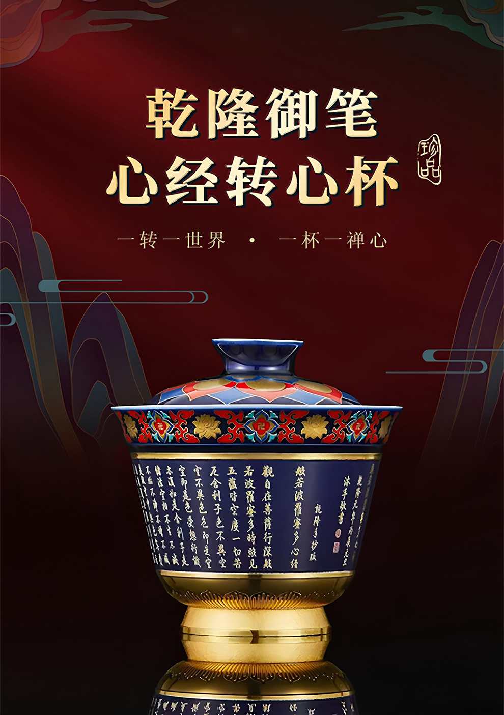 故宫馆藏文物文创《乾隆御笔心经转心杯》 汪明大师监制陶瓷珍品·一转一禅心·传世孤品!