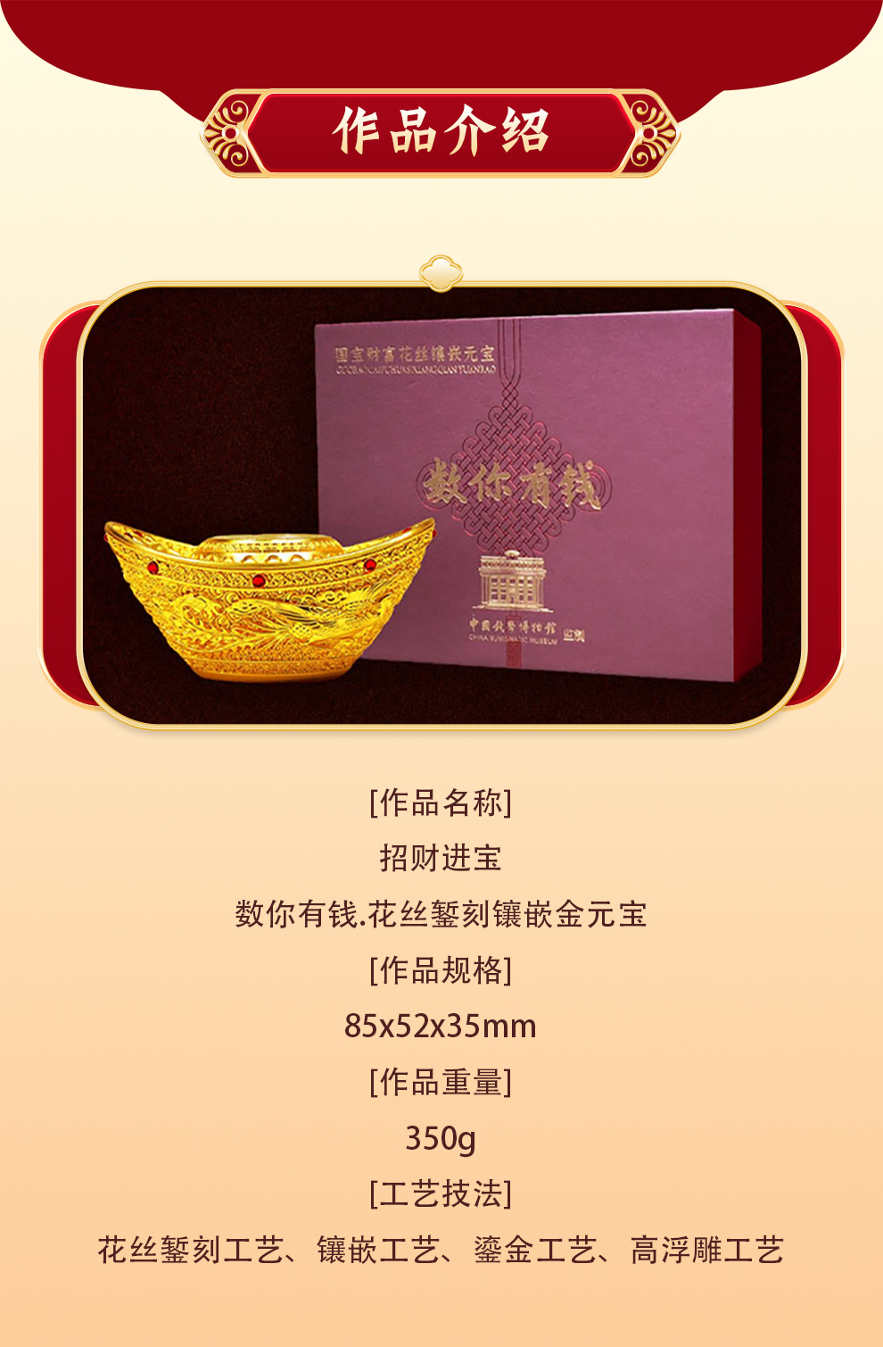 首页 > 花丝镶嵌丨苏绣 > 花丝镶嵌 > 《招财进宝》花丝镶嵌金元宝 | 故宫专家曹静楼品鉴 非遗大师钳海强督造 | 聚宝生财,数你有钱