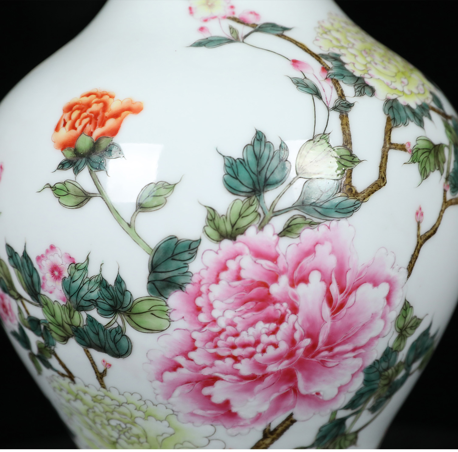 粉彩花卉盘口瓶 | 王辉大师珐琅彩传世之作 | 经典器型,繁花似锦,雅室生辉