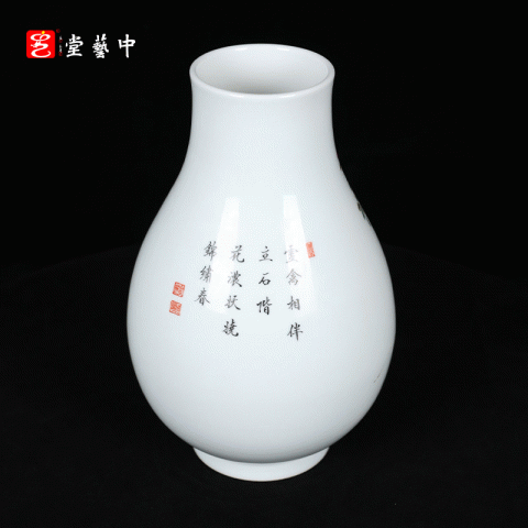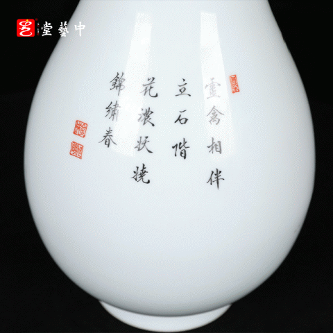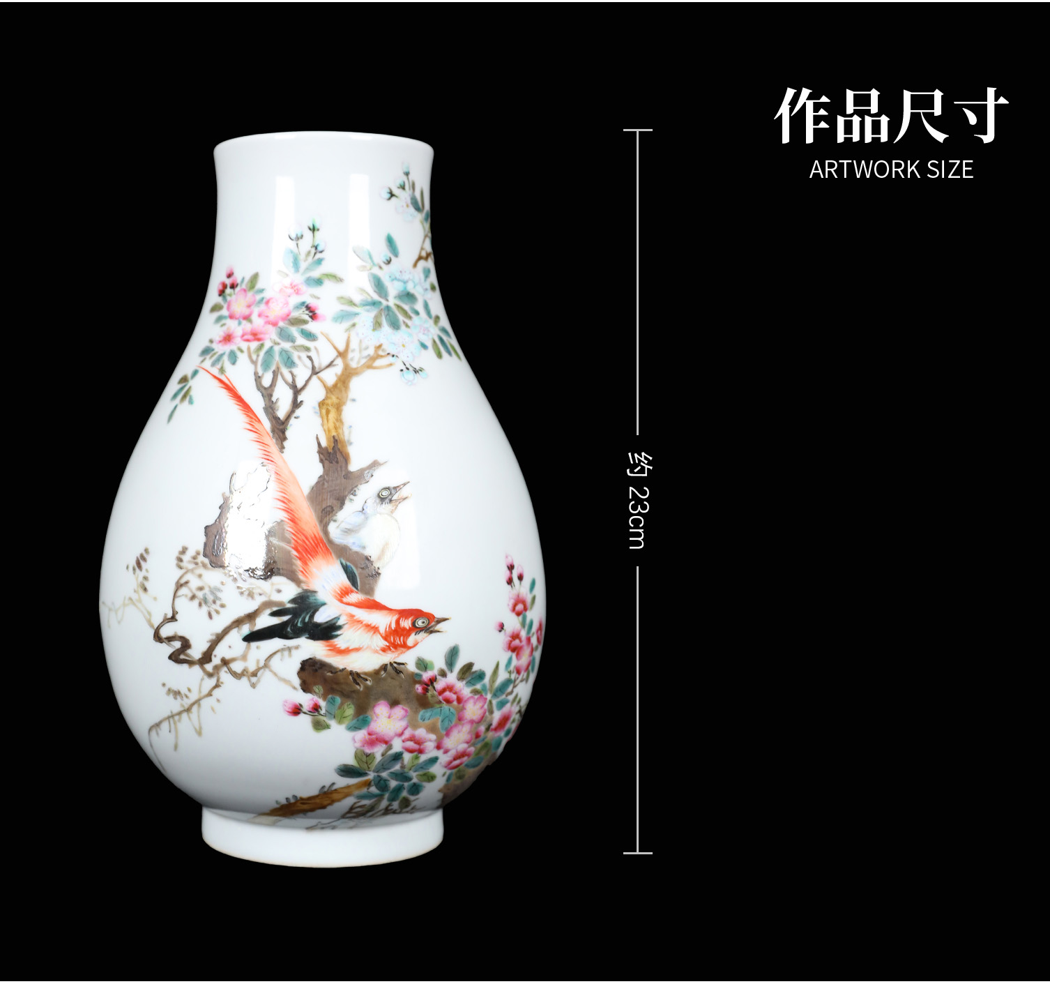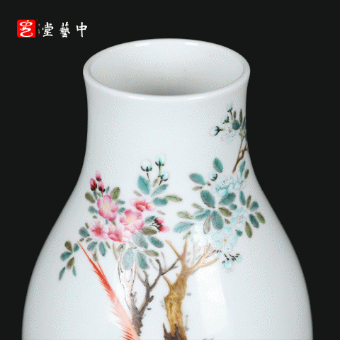 粉彩雉鸡玉壶春瓶 | 王辉大师珐琅彩雅作,瓶型圆润,绘工精细 | 雉鸡灵动,彩韵盎然