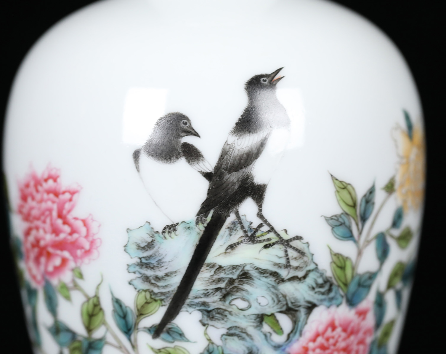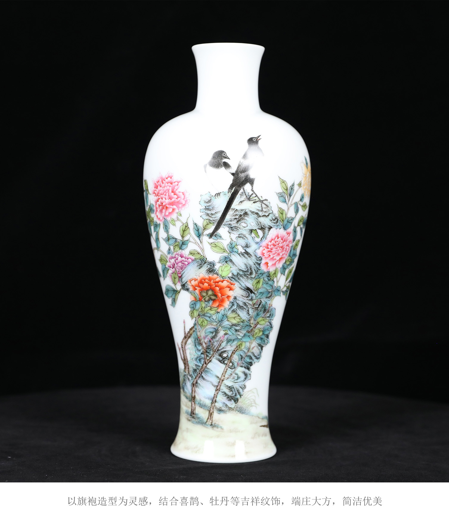 珐琅彩喜鹊牡丹淑女瓶 | 王辉大师以瓷塑形,旗袍为灵感,淑女婷婷 | 器型创新,彩绘典雅
