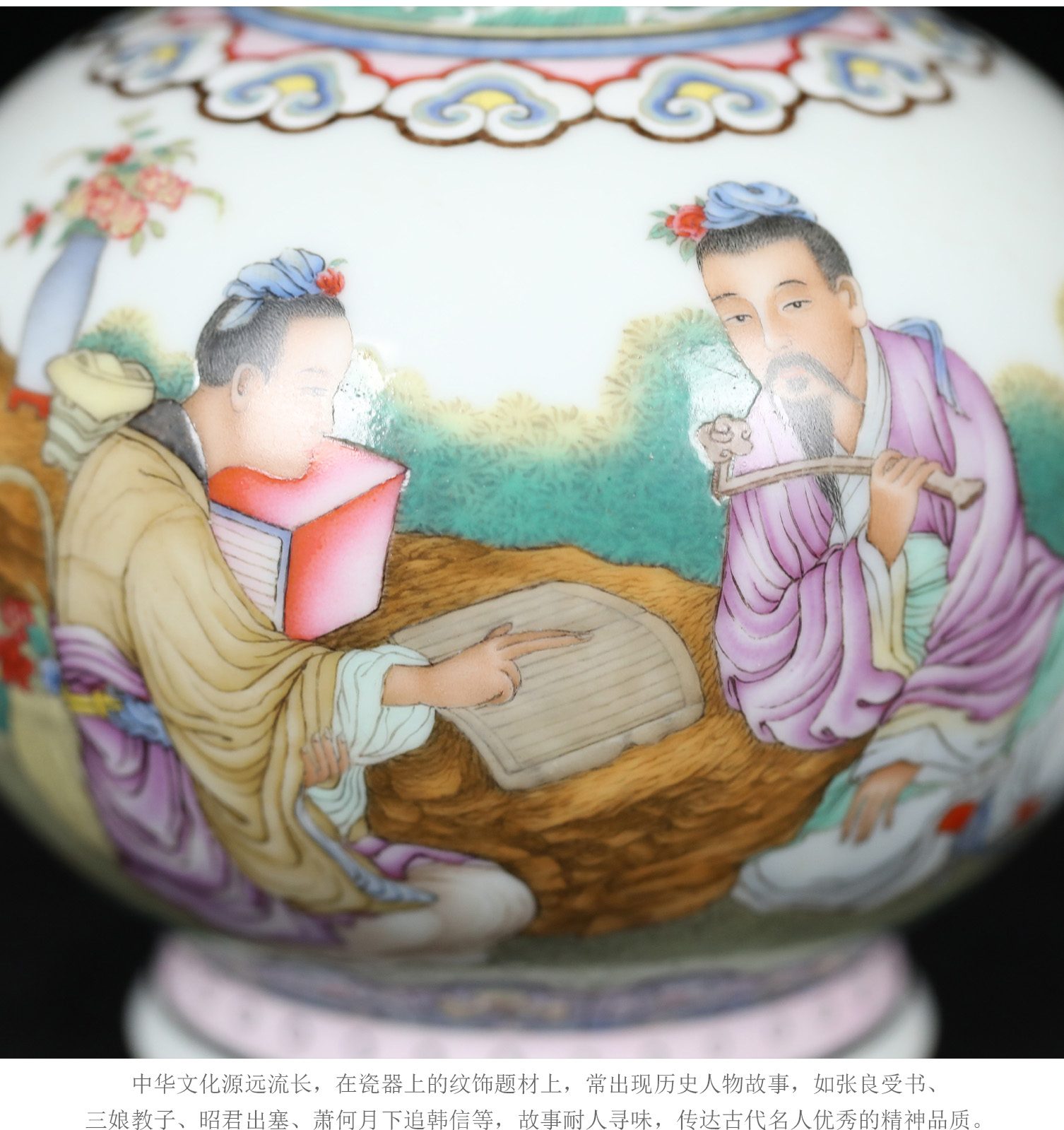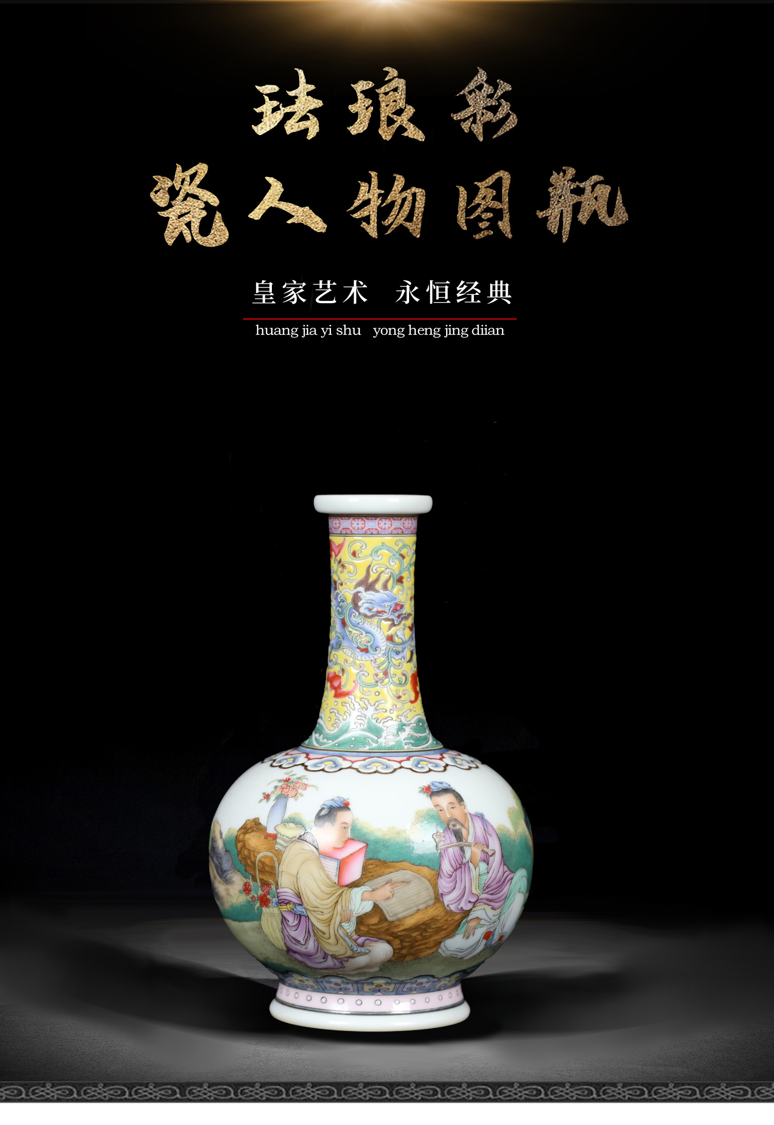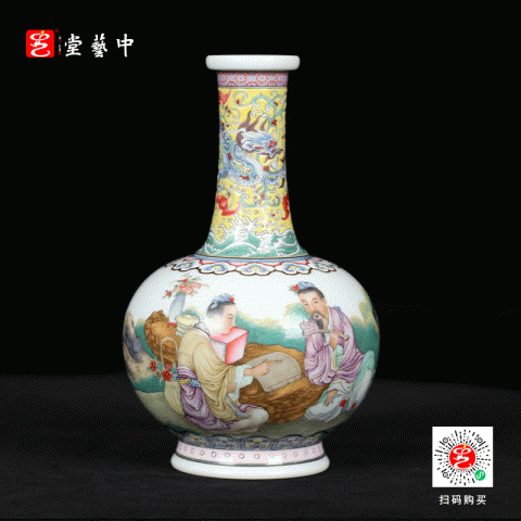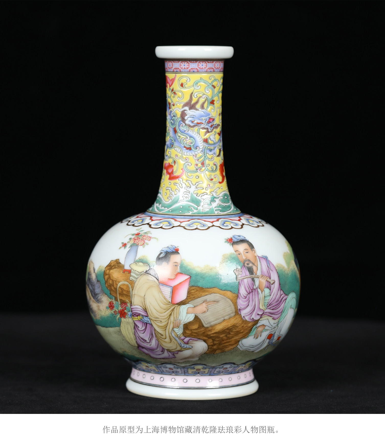 复刻上海博物馆藏珍·珐琅彩人物图瓶 | 王辉再现乾隆人物故事瓷 | 张良受书,运筹帷幄,黄地龙纹,气韵非凡