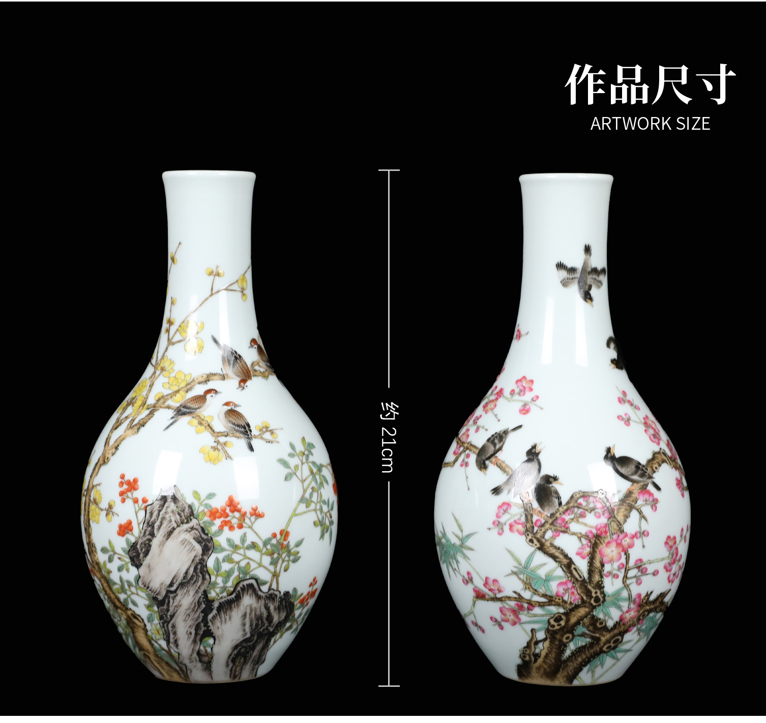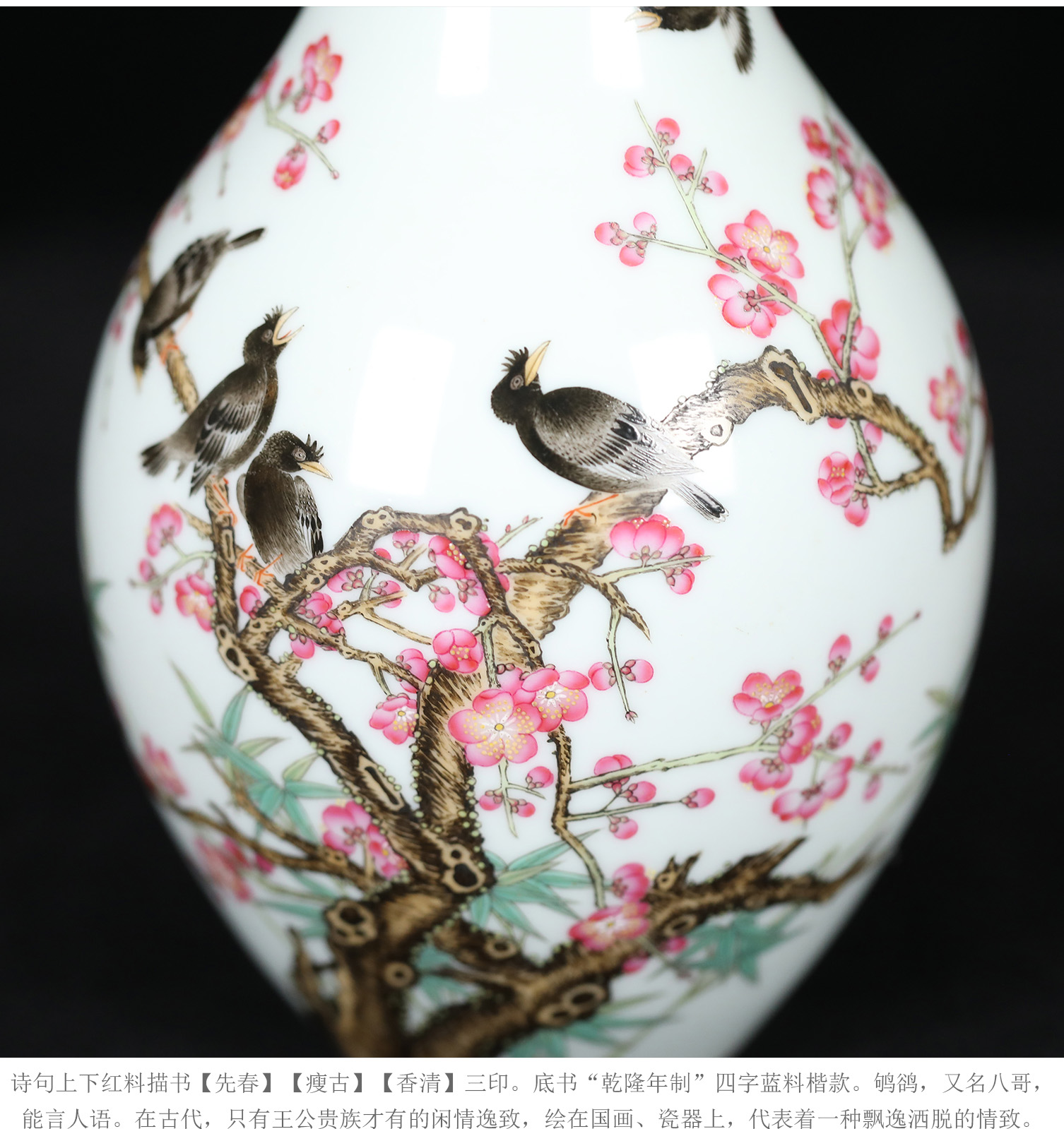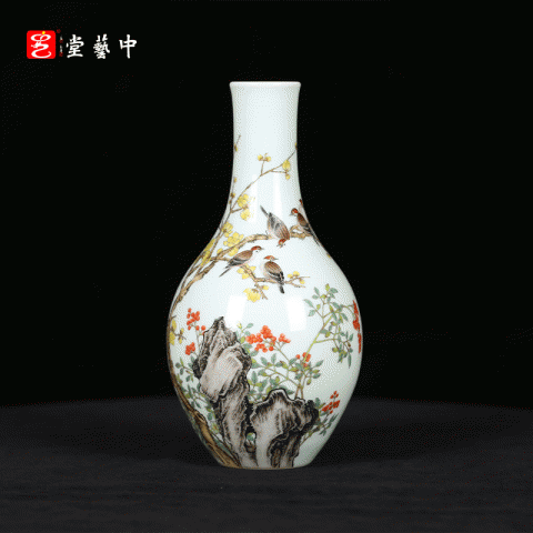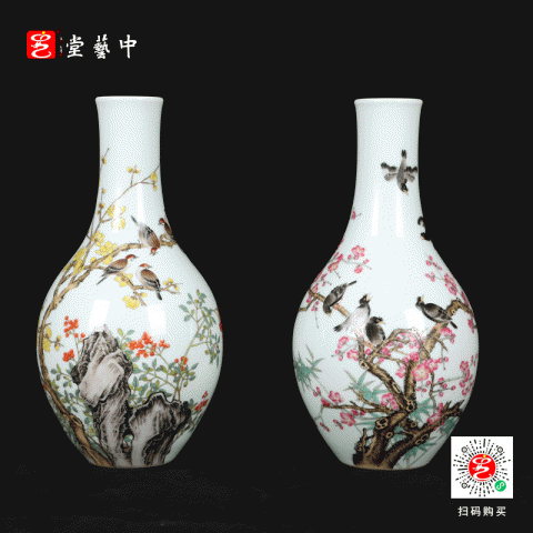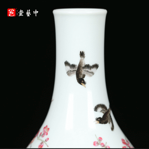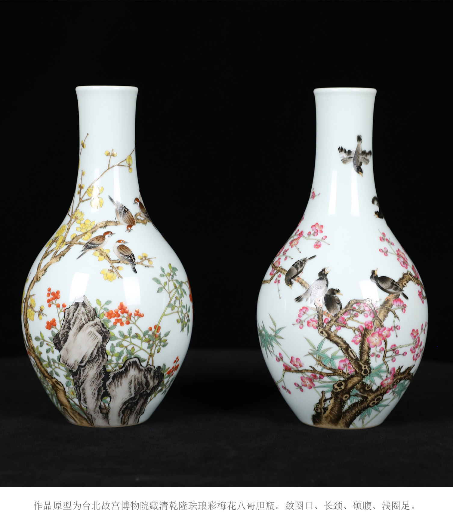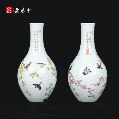 宫廷珐琅彩典藏·王辉督造「鸲鹆梅花胆瓶」 | 台北故宫同款,对瓶典藏 | 可人鸲鹄知春色,雅室生辉