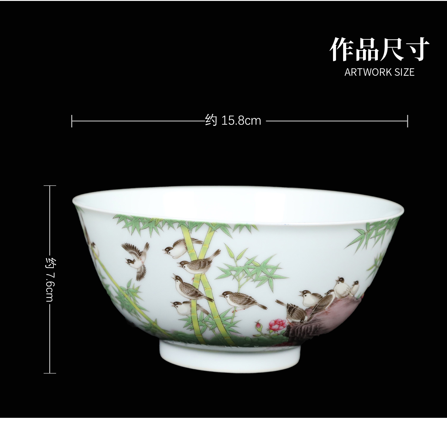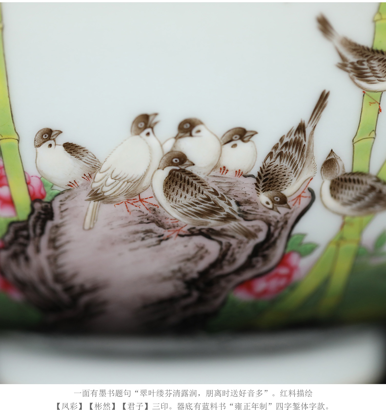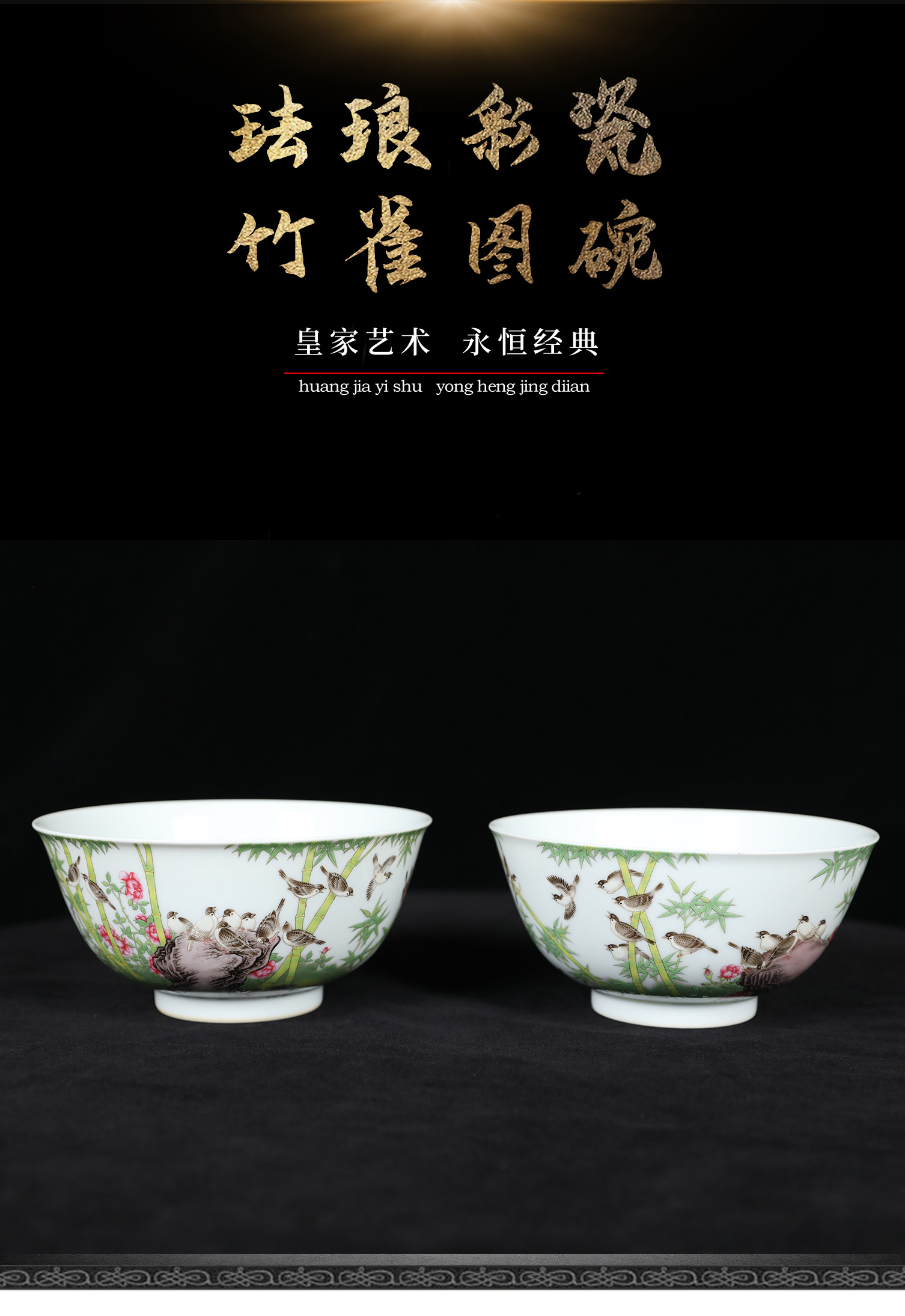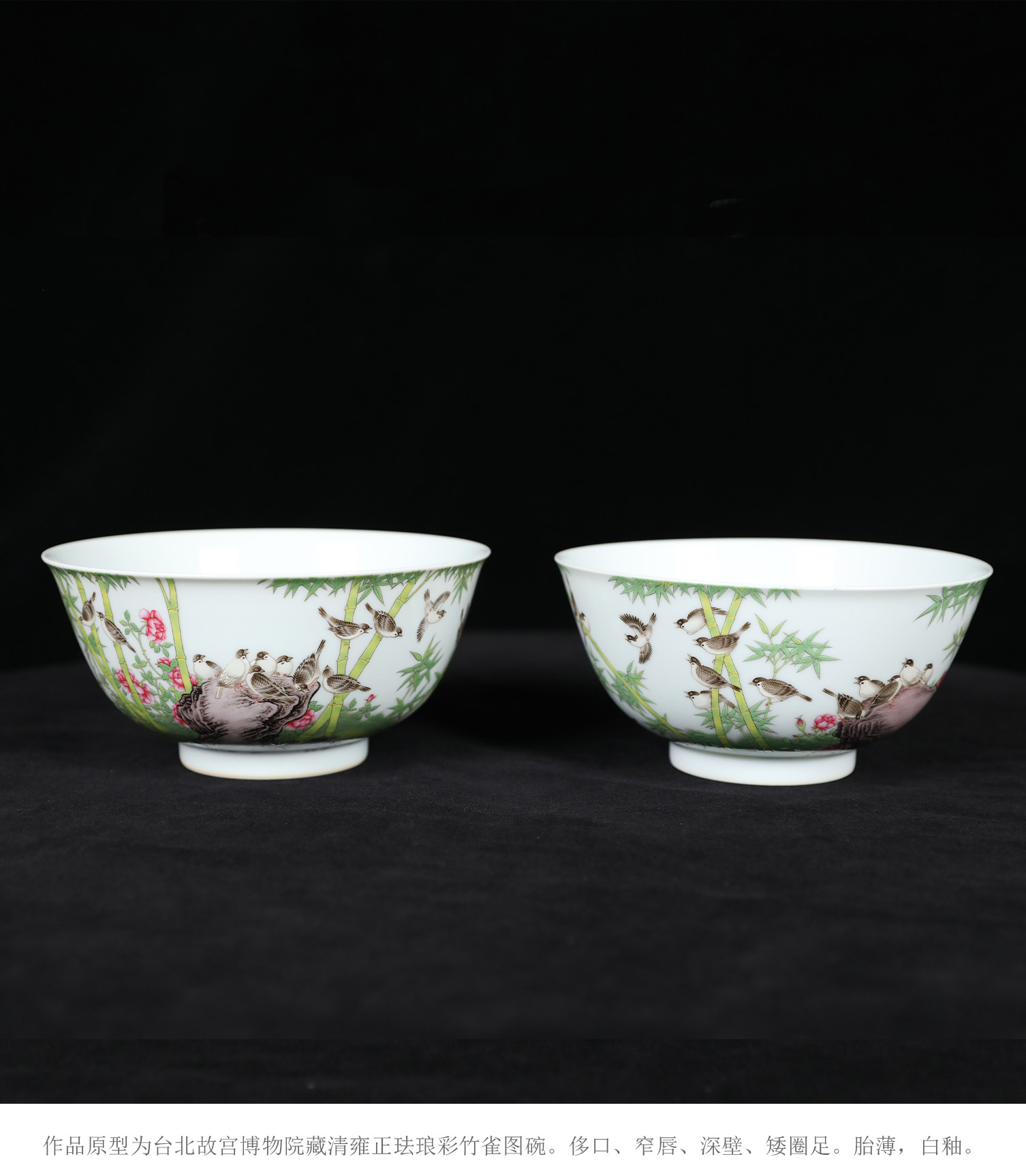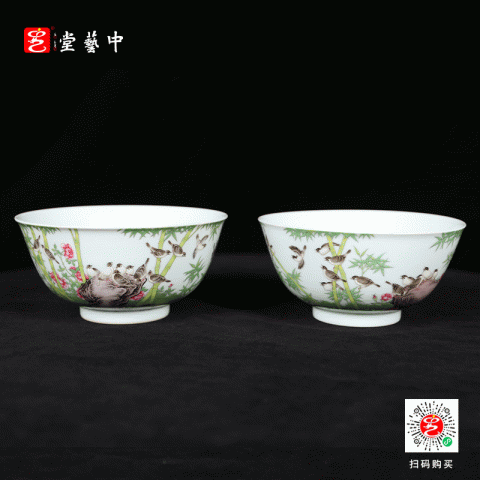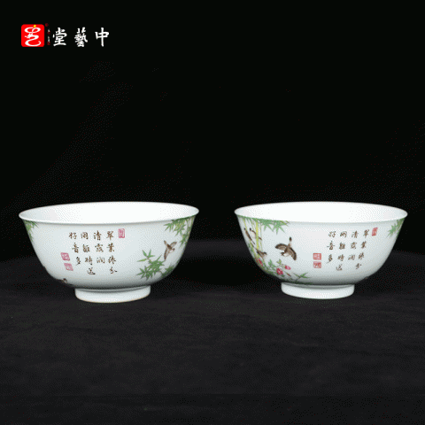 复刻台北故宫雍正官窑·珐琅彩竹雀图碗(一对) | 王辉再现诗书画印四绝珍品 | 竹雀生趣,题句钤印,对碗典藏