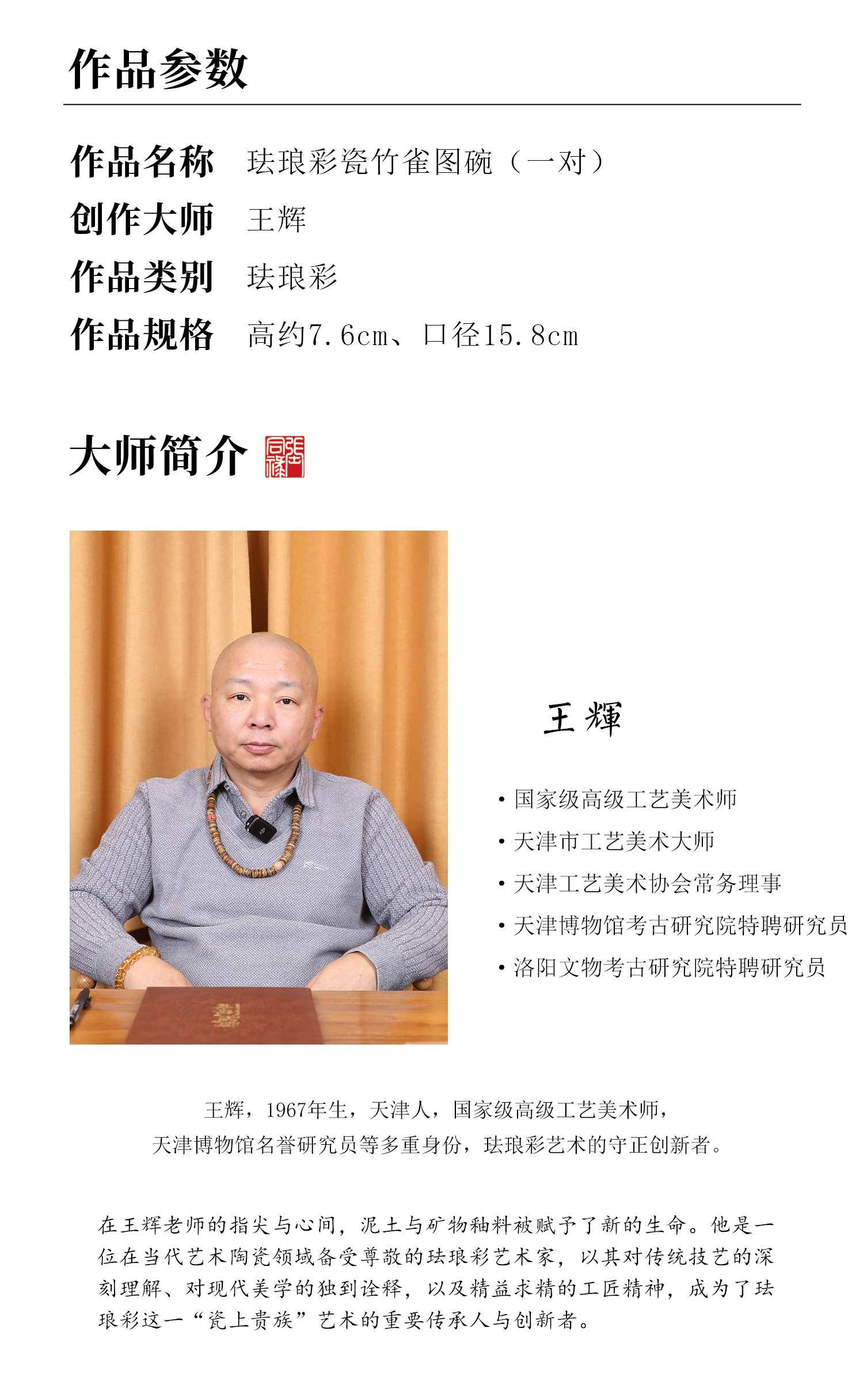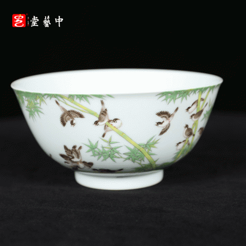 首页 > 瓷器丨内画丨书画 > 瓷器 > 王辉 > 复刻台北故宫雍正官窑·珐琅彩竹雀图碗(一对) | 王辉再现诗书画印四绝珍品 | 竹雀生趣,题句钤印,对碗典藏