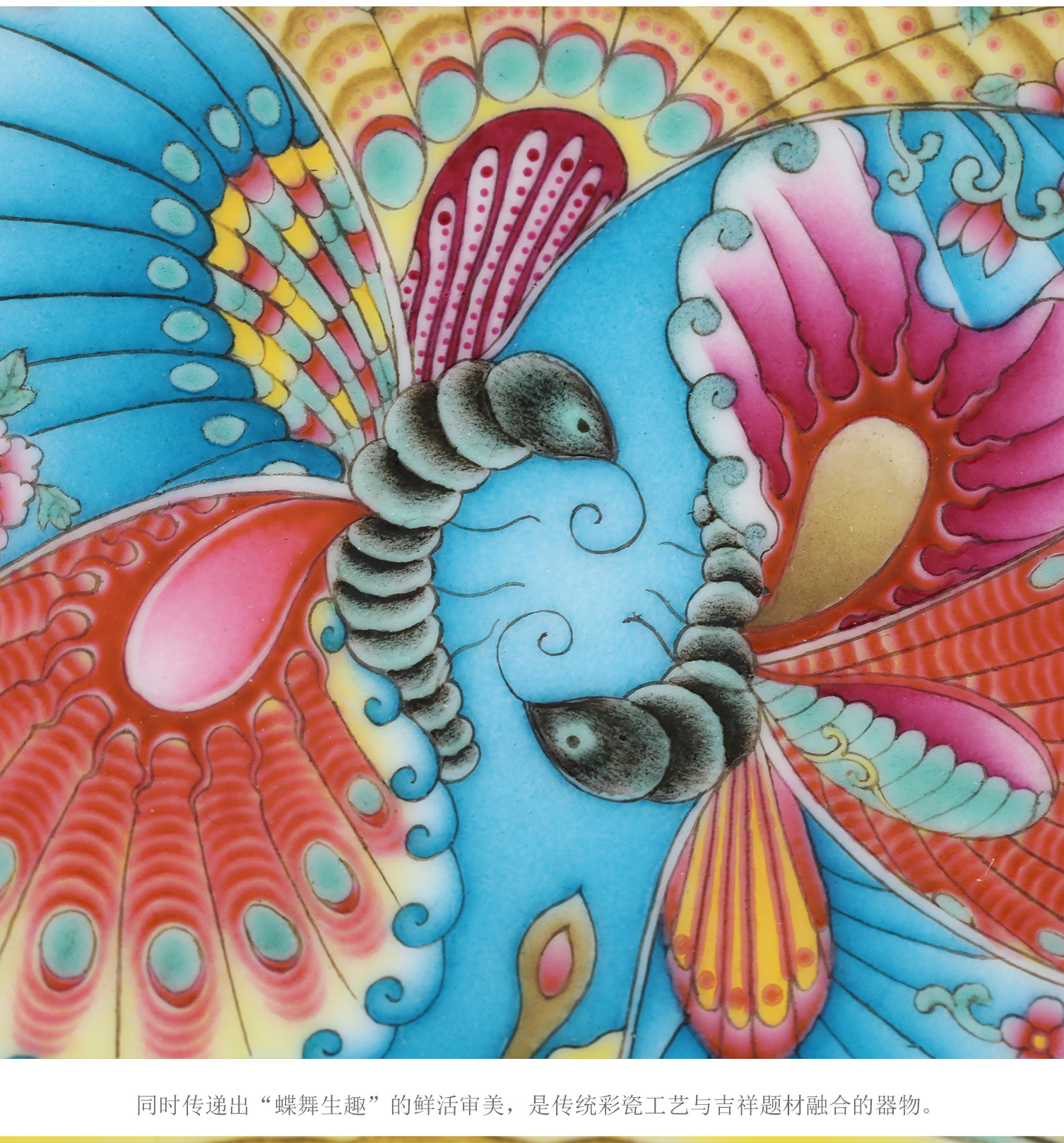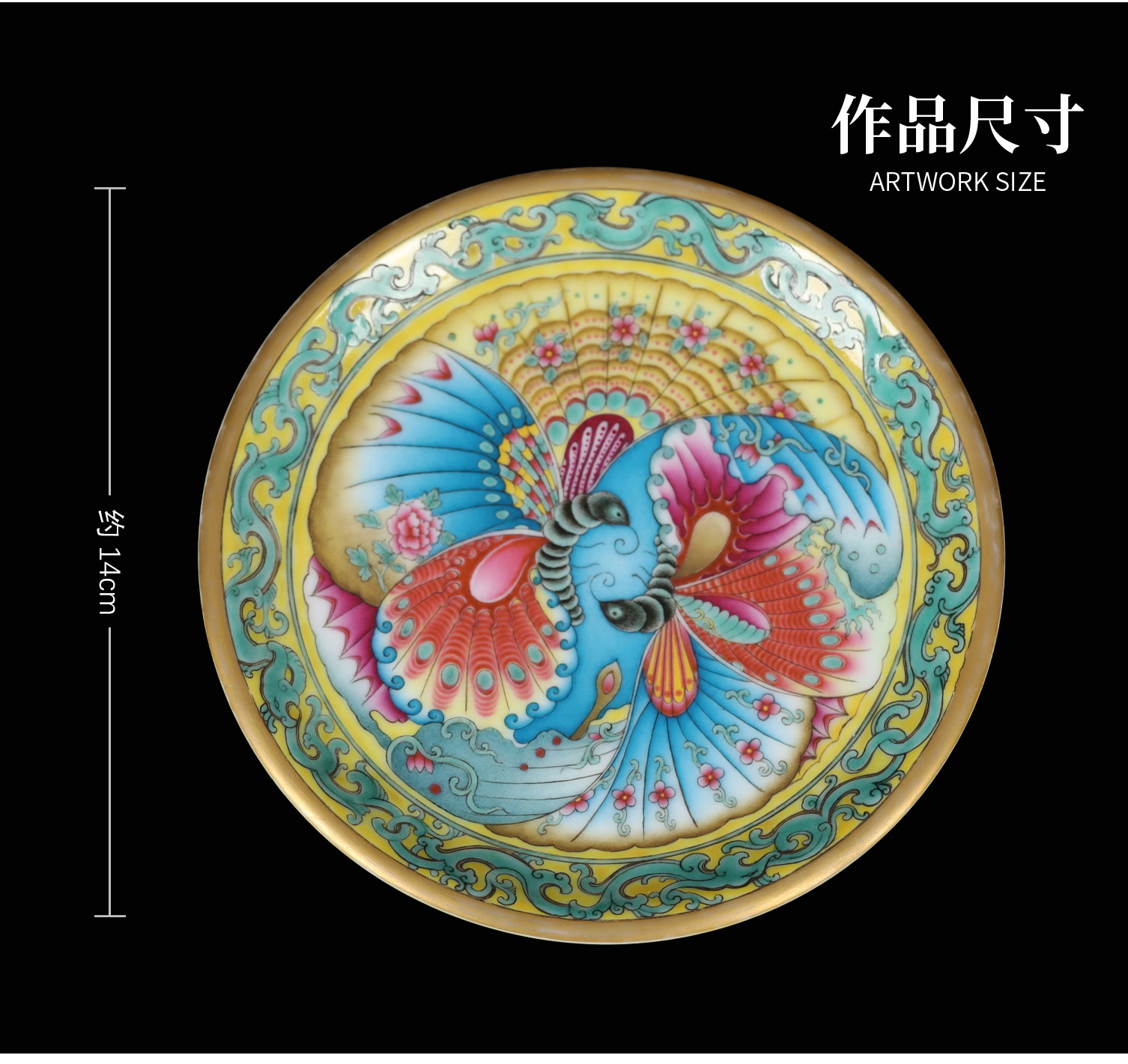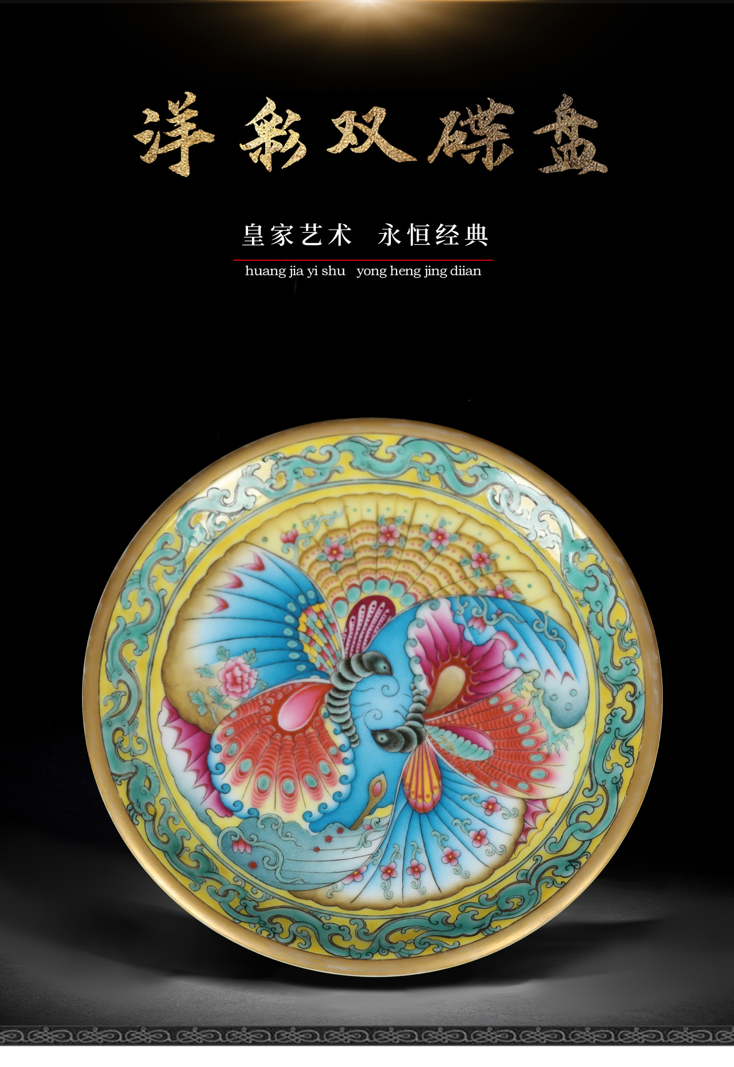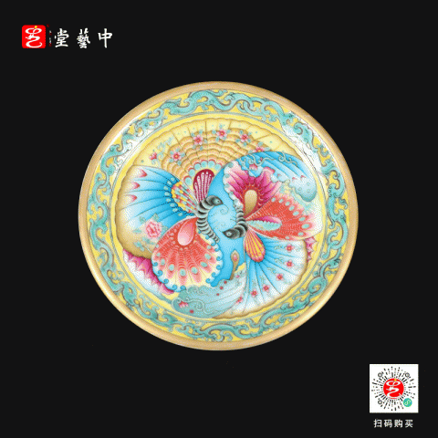 洋彩双碟盘 | 王辉大师珐琅彩雅作,蝶舞翩跹,缠枝曼妙 | 彩绘明艳,盘上生趣