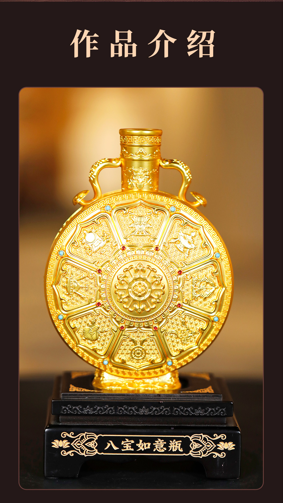 两代非遗技艺首聚一器 | 《八宝如意瓶》花丝镶嵌錾刻艺术摆件 | 金灿光闪,龙腾凤舞
