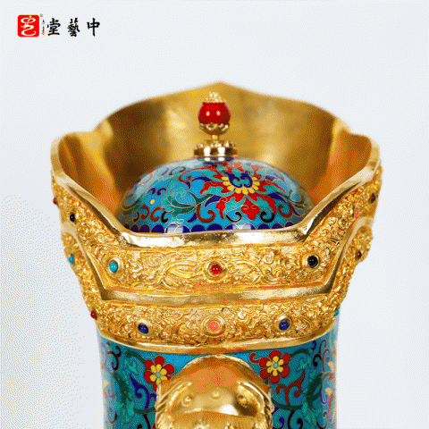 故宫传世六珍·霍铁辉亲铸 | 景泰蓝《多穆壶》 | 汉藏艺术融合的皇家法器​