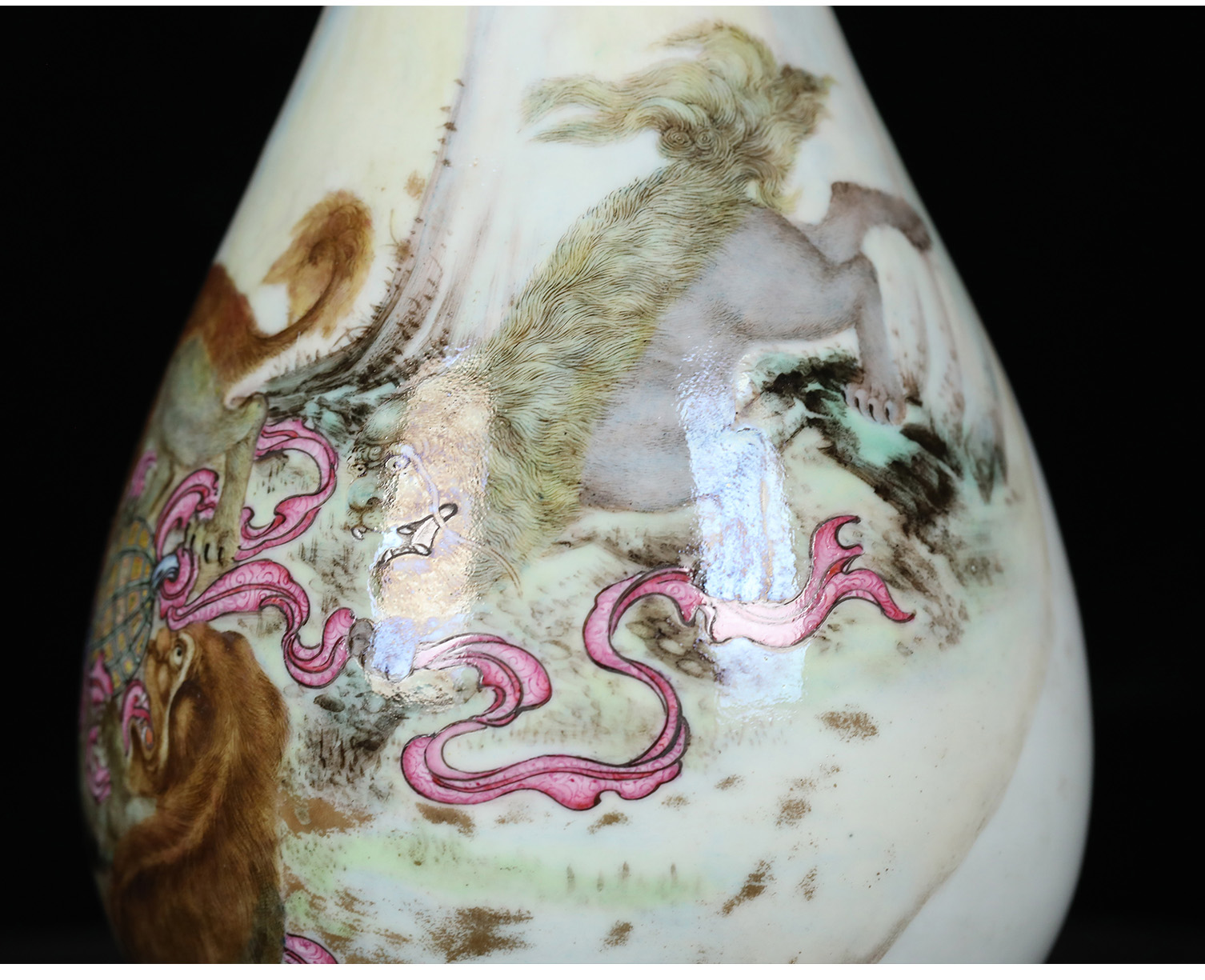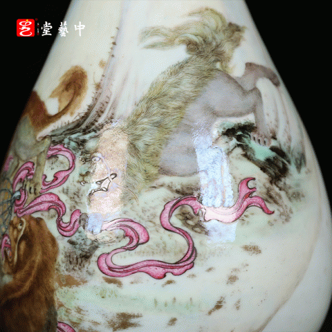 首页 > 瓷器丨内画丨书画 > 瓷器 > 王辉 > 王辉大师制《粉彩事事如意瓶》 | 粉润柔和,瑞兽生动,景致层叠 | 案头陈设,寓意祥瑞