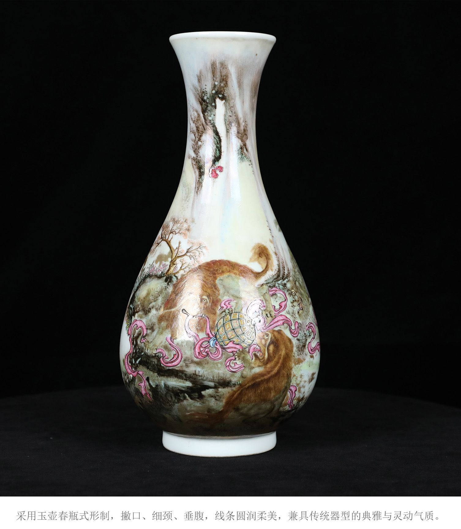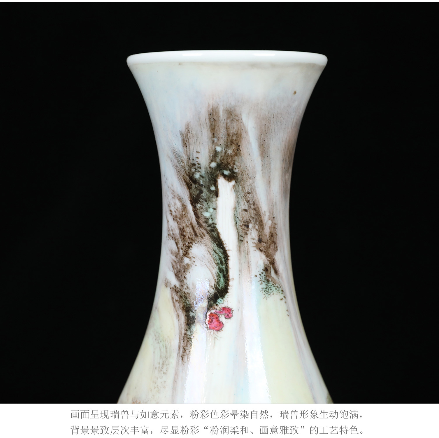 王辉大师制《粉彩事事如意瓶》 | 粉润柔和,瑞兽生动,景致层叠 | 案头陈设,寓意祥瑞