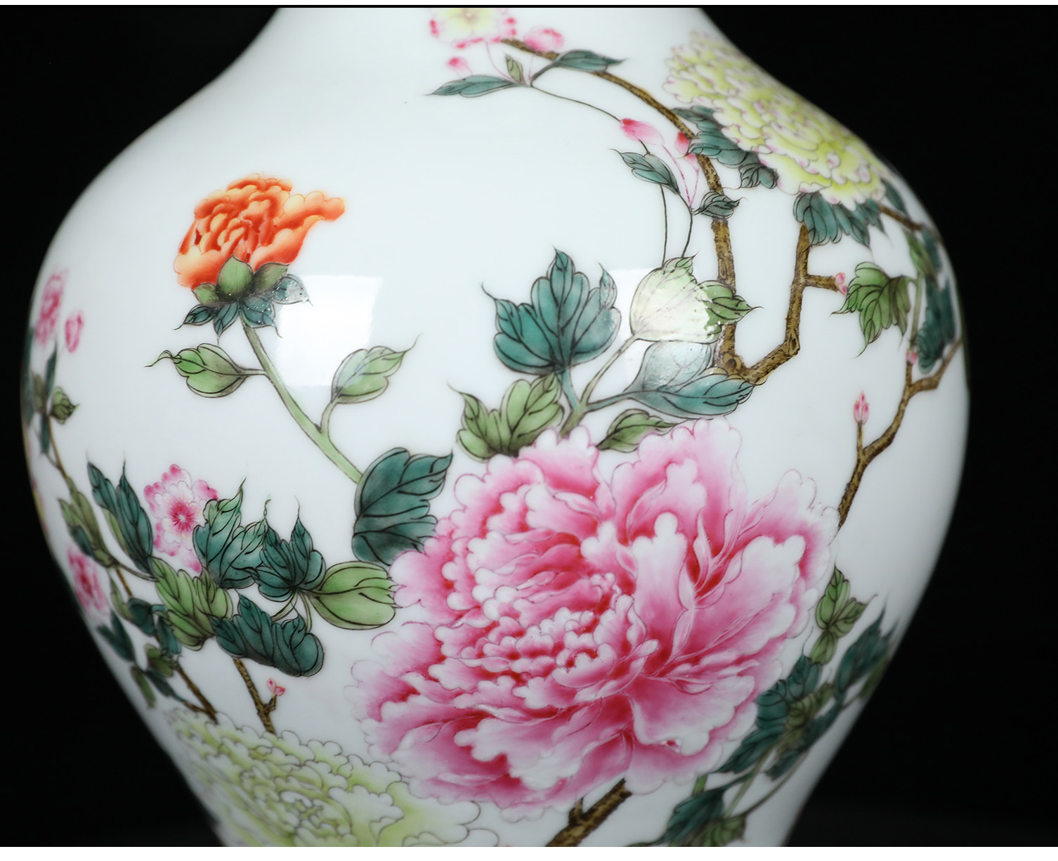 粉彩花卉盘口瓶 | 王辉大师珐琅彩传世之作 | 经典器型,繁花似锦,雅室生辉