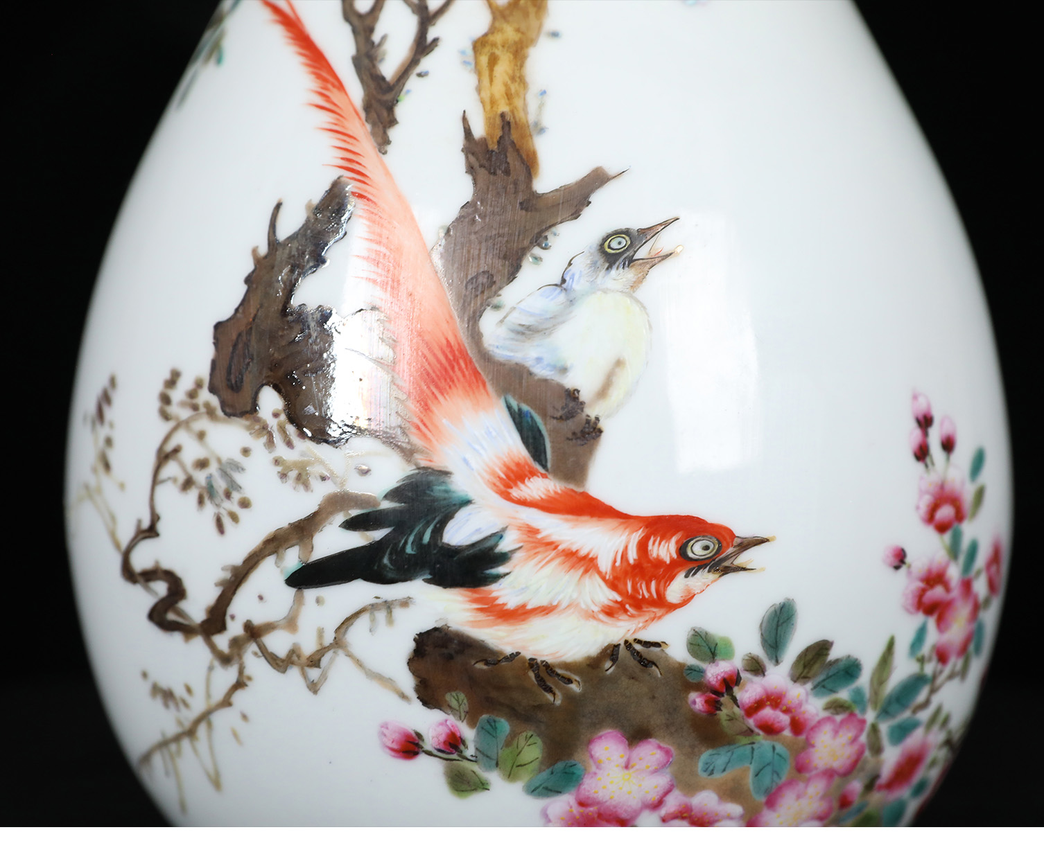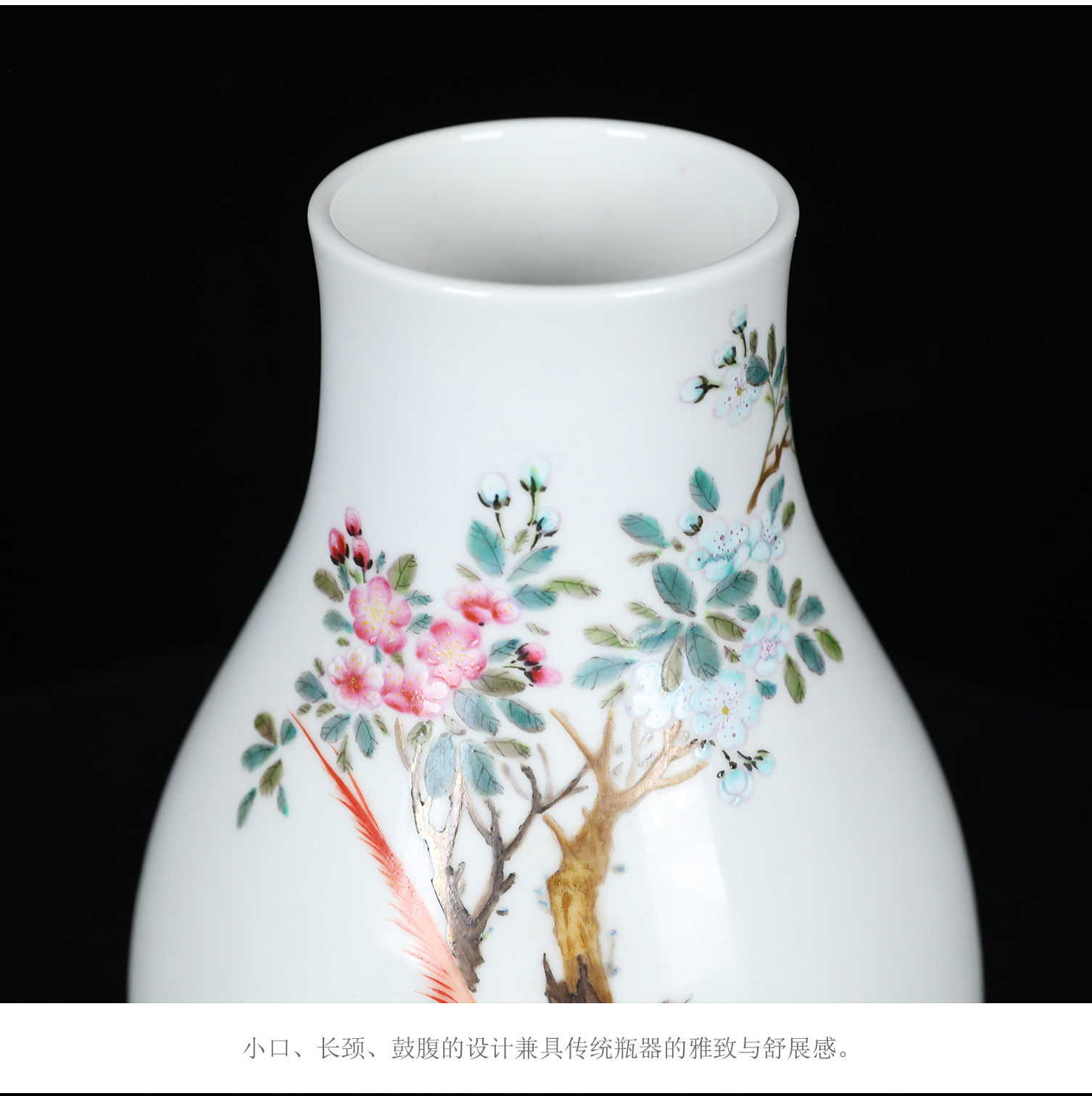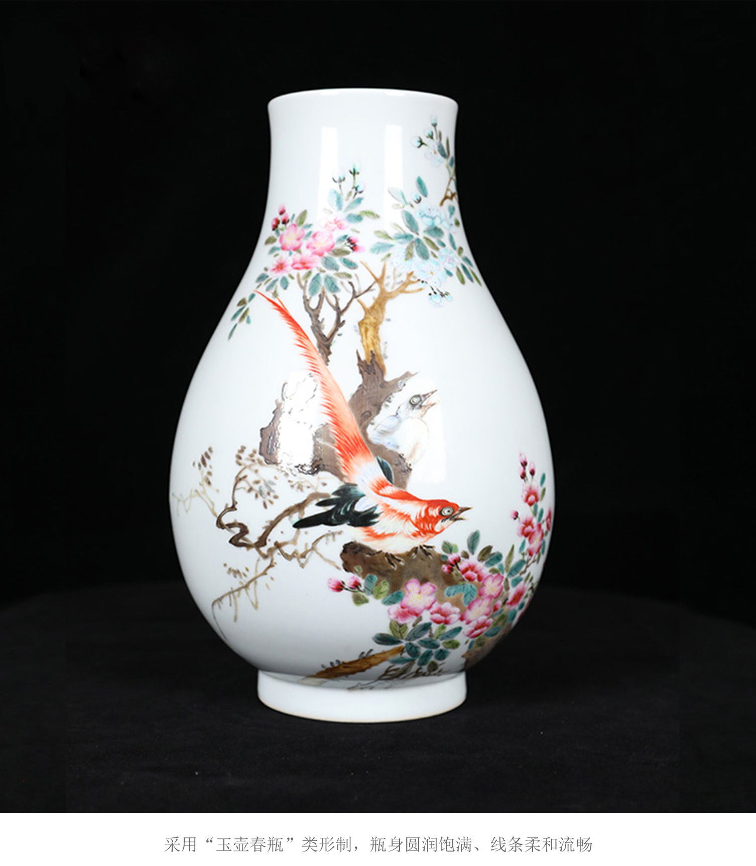 粉彩雉鸡玉壶春瓶 | 王辉大师珐琅彩雅作,瓶型圆润,绘工精细 | 雉鸡灵动,彩韵盎然