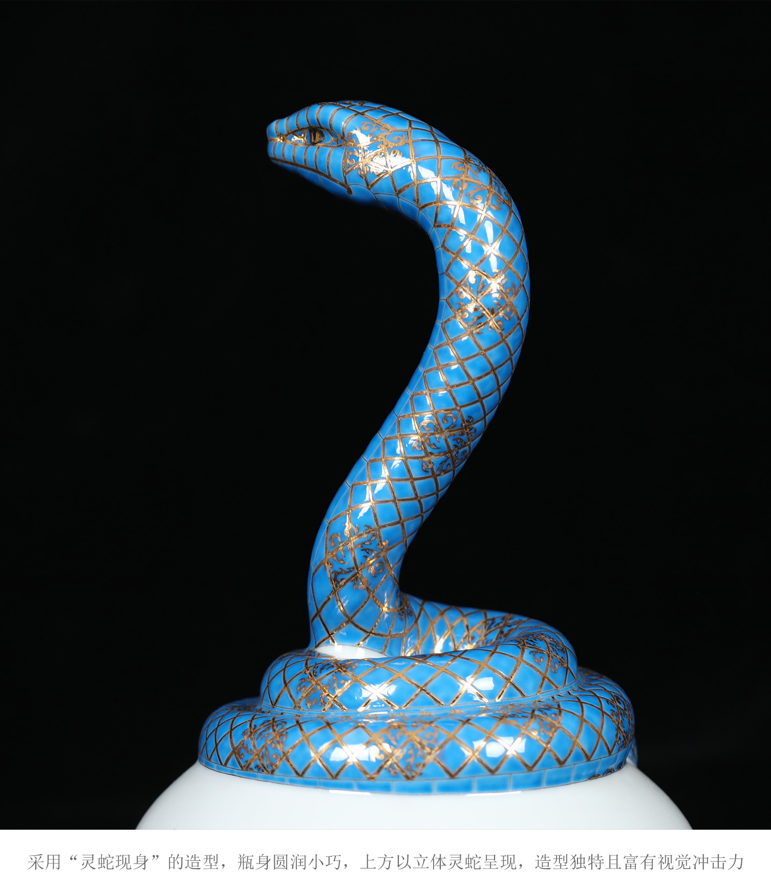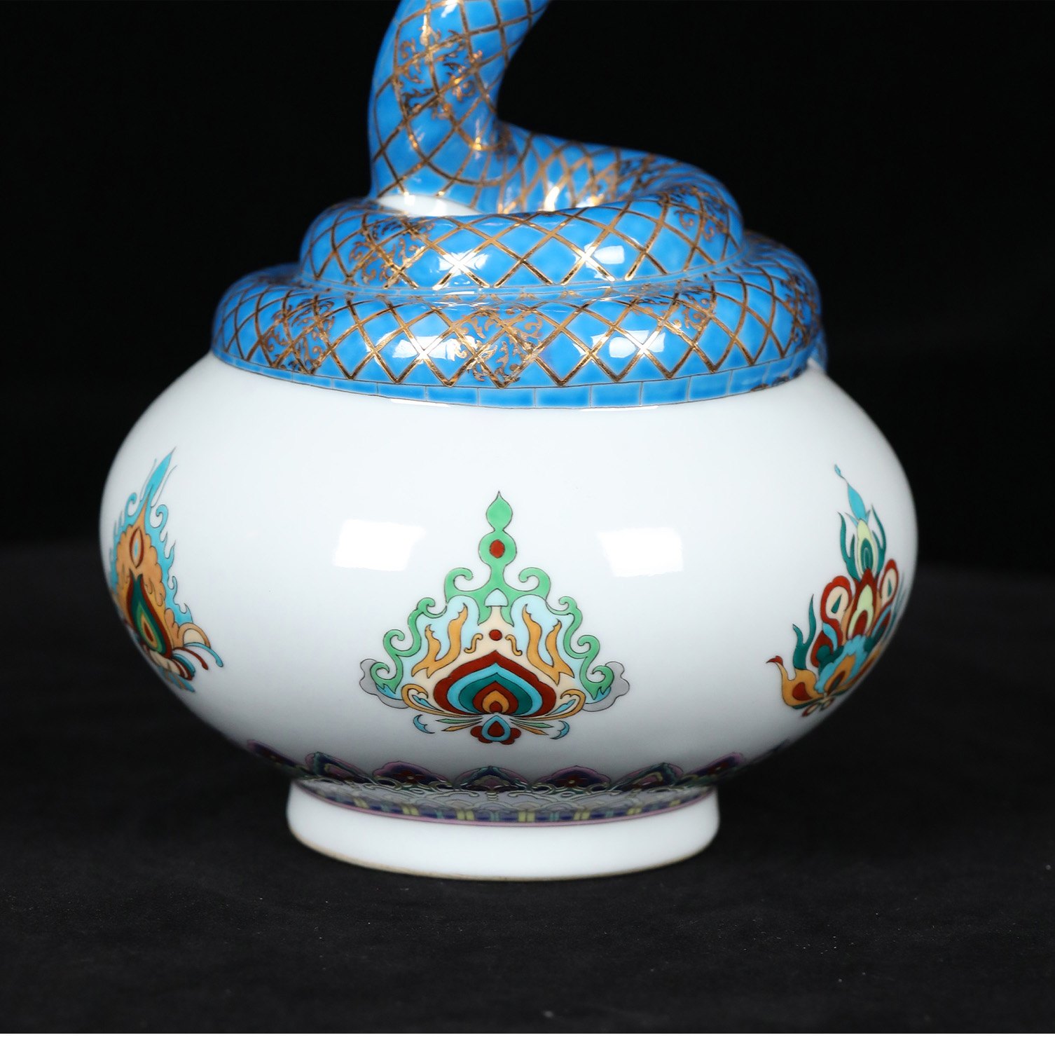 珐琅彩灵蛇献瑞尊(蓝) | 王辉再造立体雕塑瓷珍,灵蛇现身,金彩华贵 | 祥瑞降临,纳福迎祥