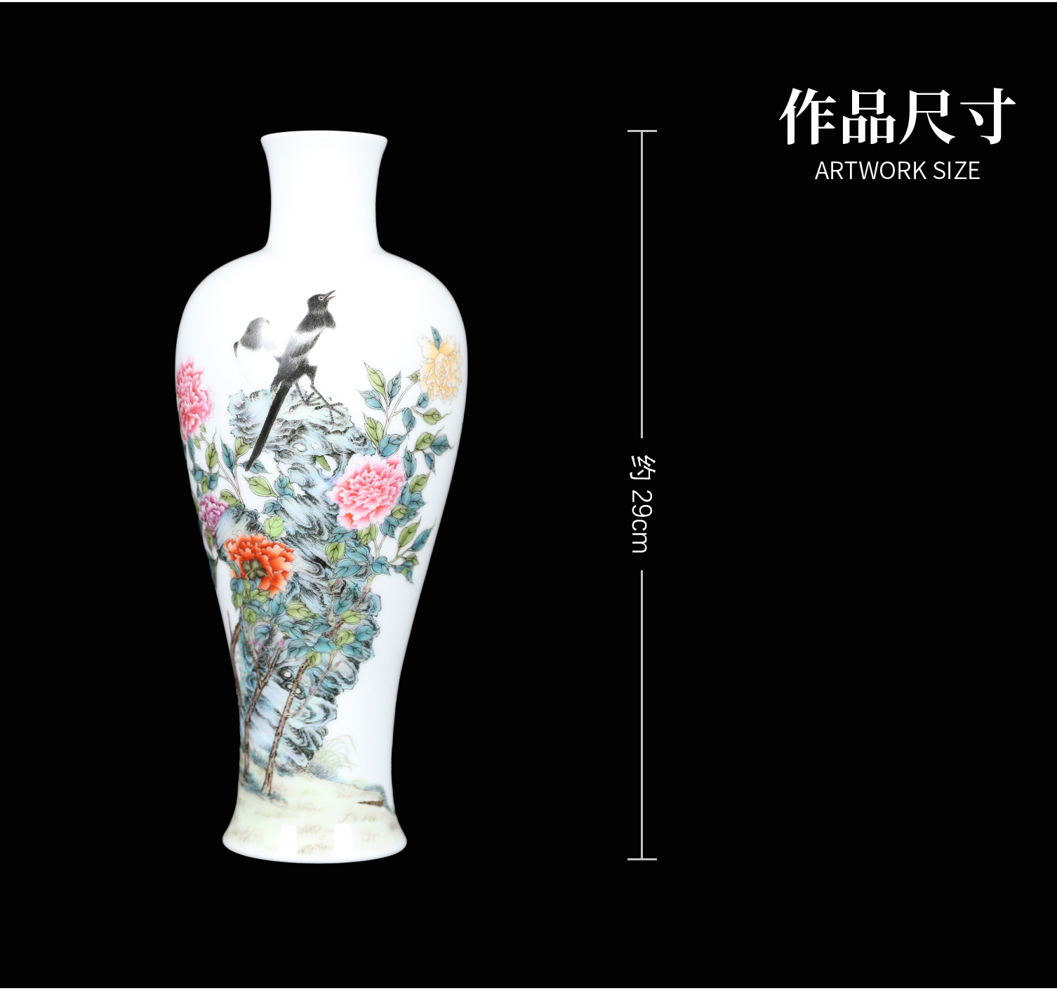 珐琅彩喜鹊牡丹淑女瓶 | 王辉大师以瓷塑形,旗袍为灵感,淑女婷婷 | 器型创新,彩绘典雅