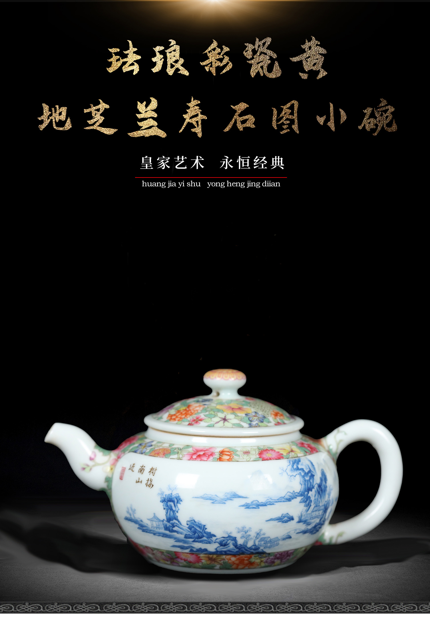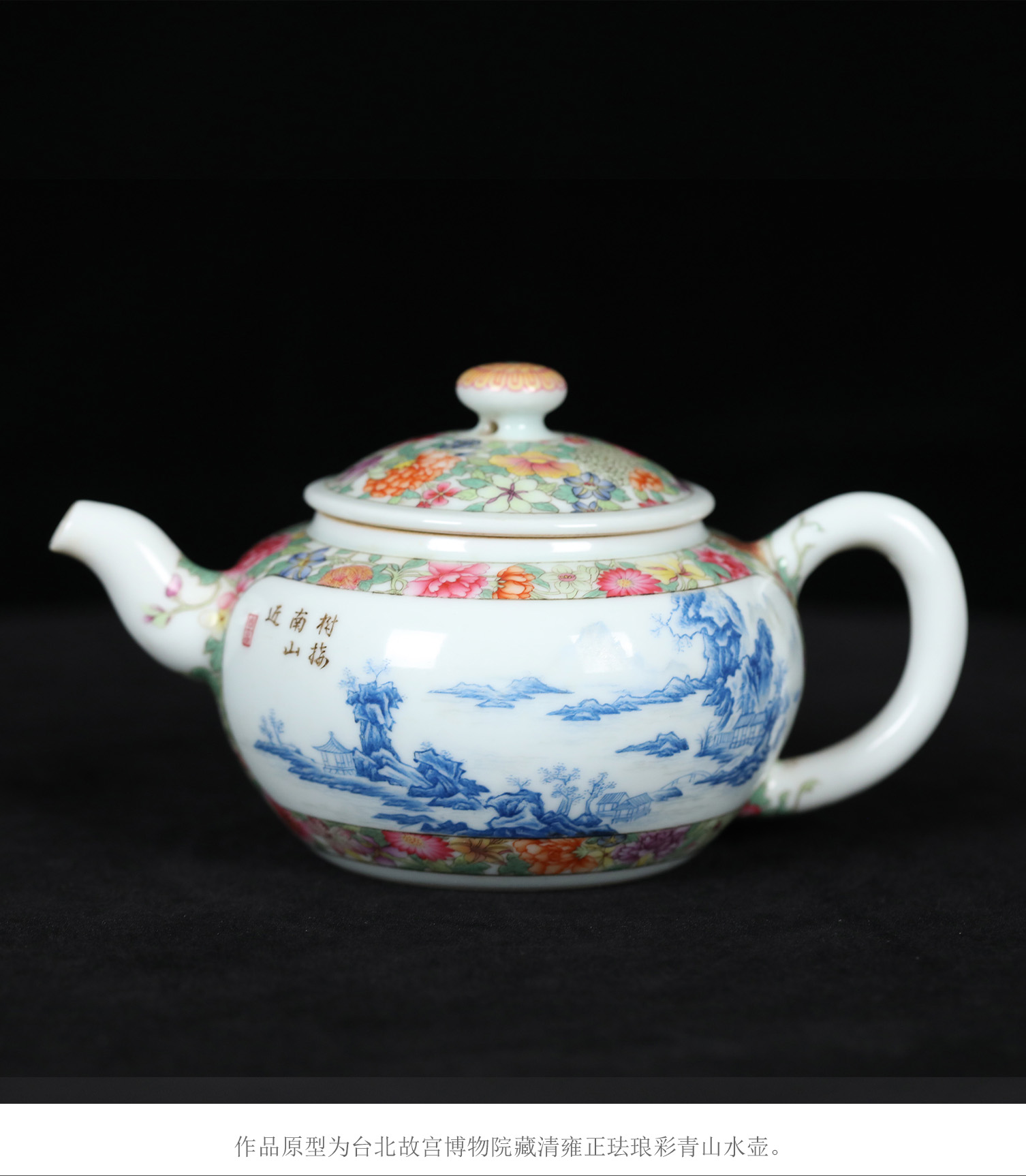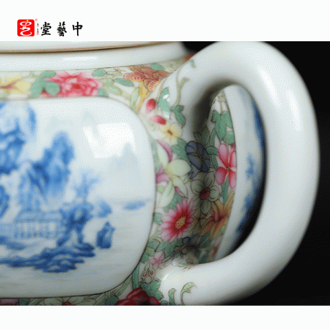 宫廷珐琅彩典藏·王辉督造「蓝料山水把壶」 | 特价尊享,台北故宫同款 | 薄胎精工,案头雅器,珍藏之选