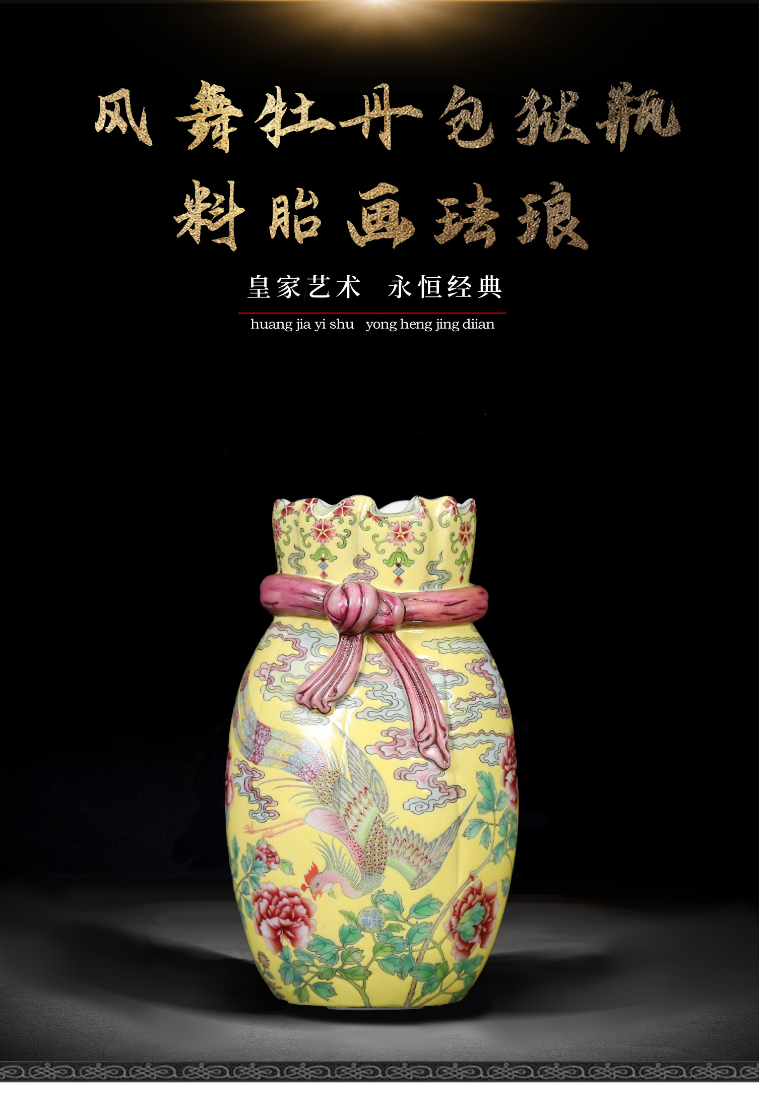 首页 > 瓷器丨内画丨书画 > 瓷器 > 王辉 > 宫廷珐琅彩典藏·王辉督造「凤舞牡丹包袱瓶」 | 苏富比同款,特价尊享 | 锦袱束瓶,富贵天成,案头重器