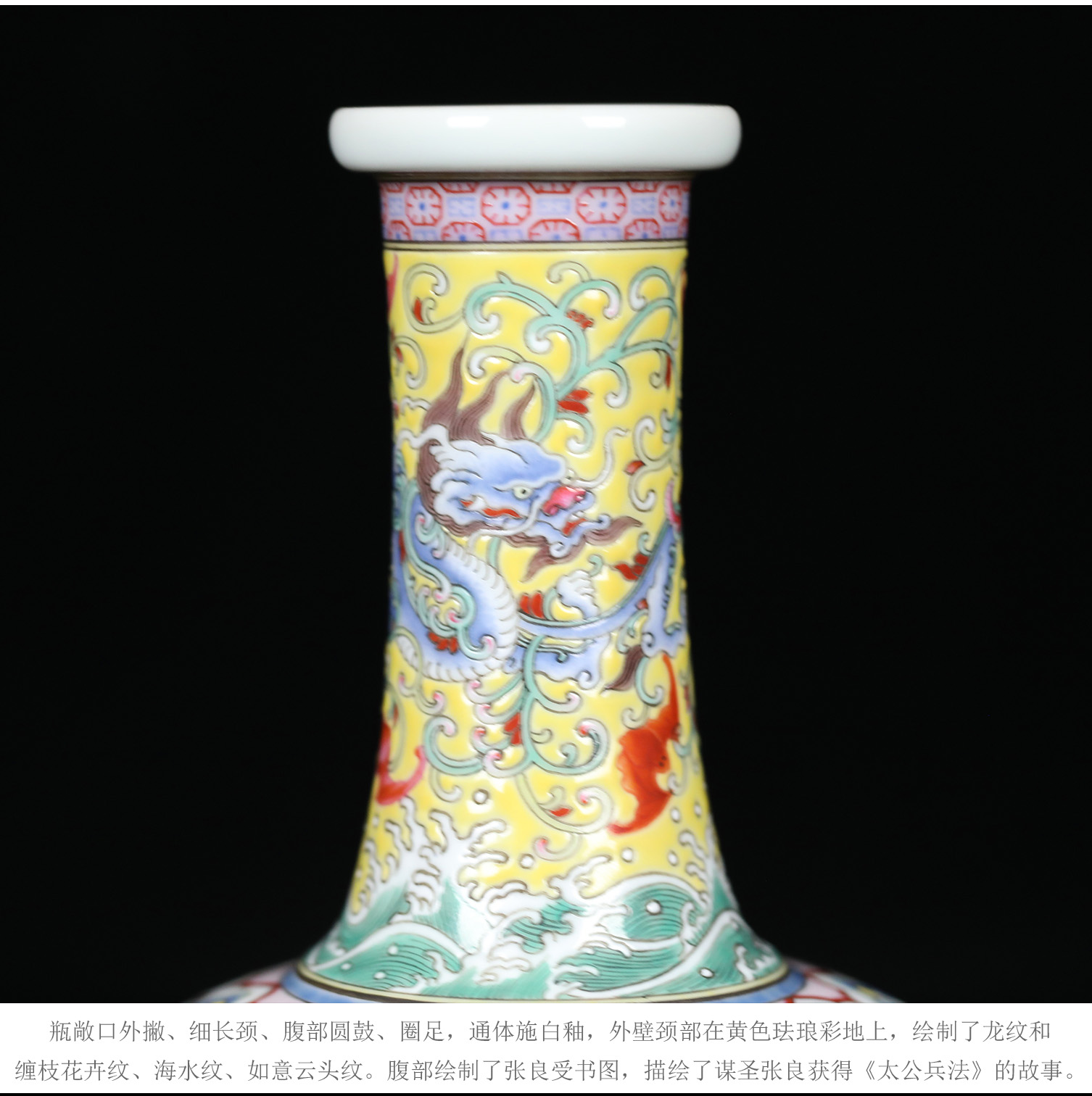 复刻上海博物馆藏珍·珐琅彩人物图瓶 | 王辉再现乾隆人物故事瓷 | 张良受书,运筹帷幄,黄地龙纹,气韵非凡
