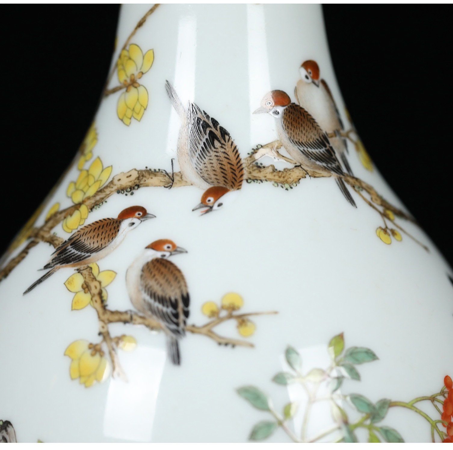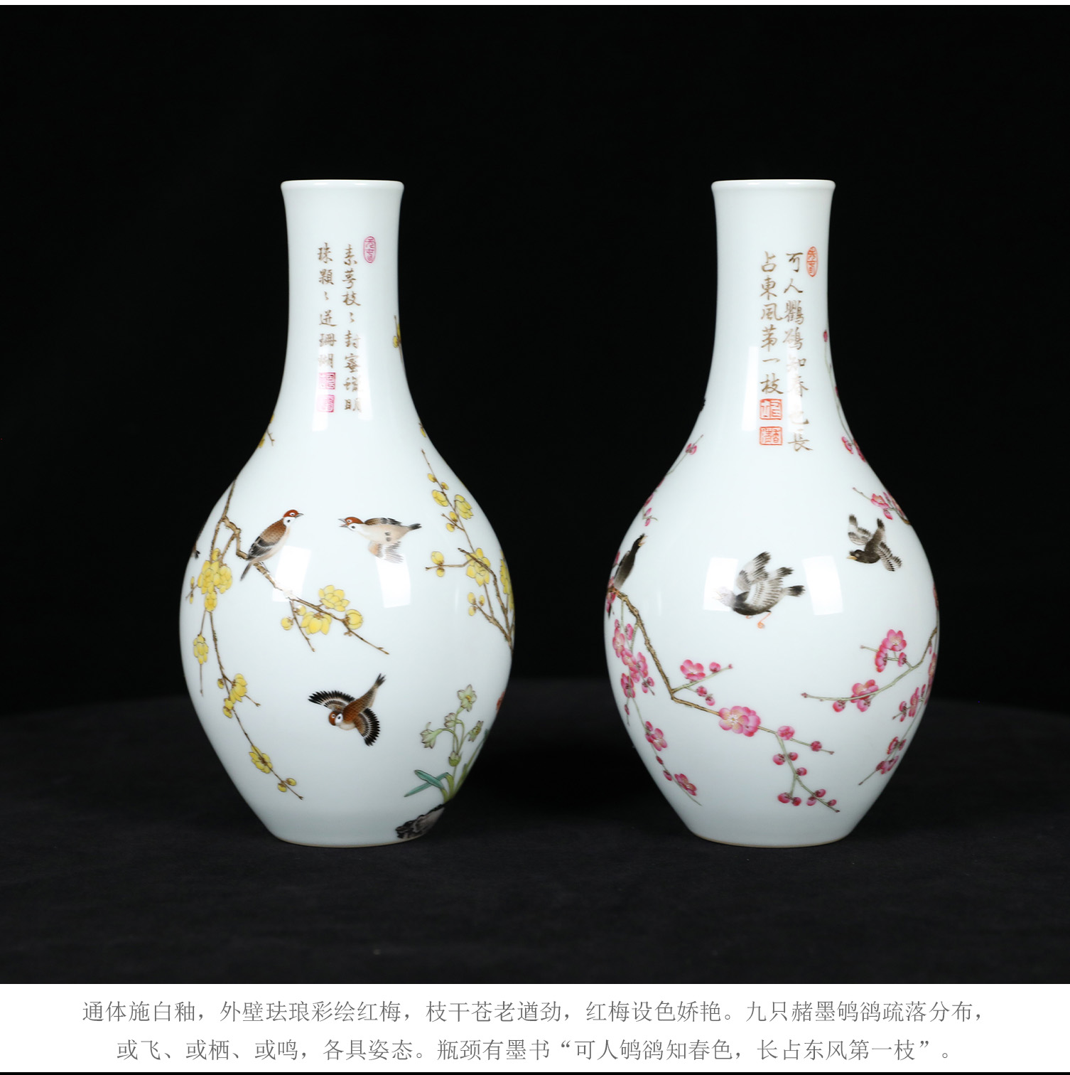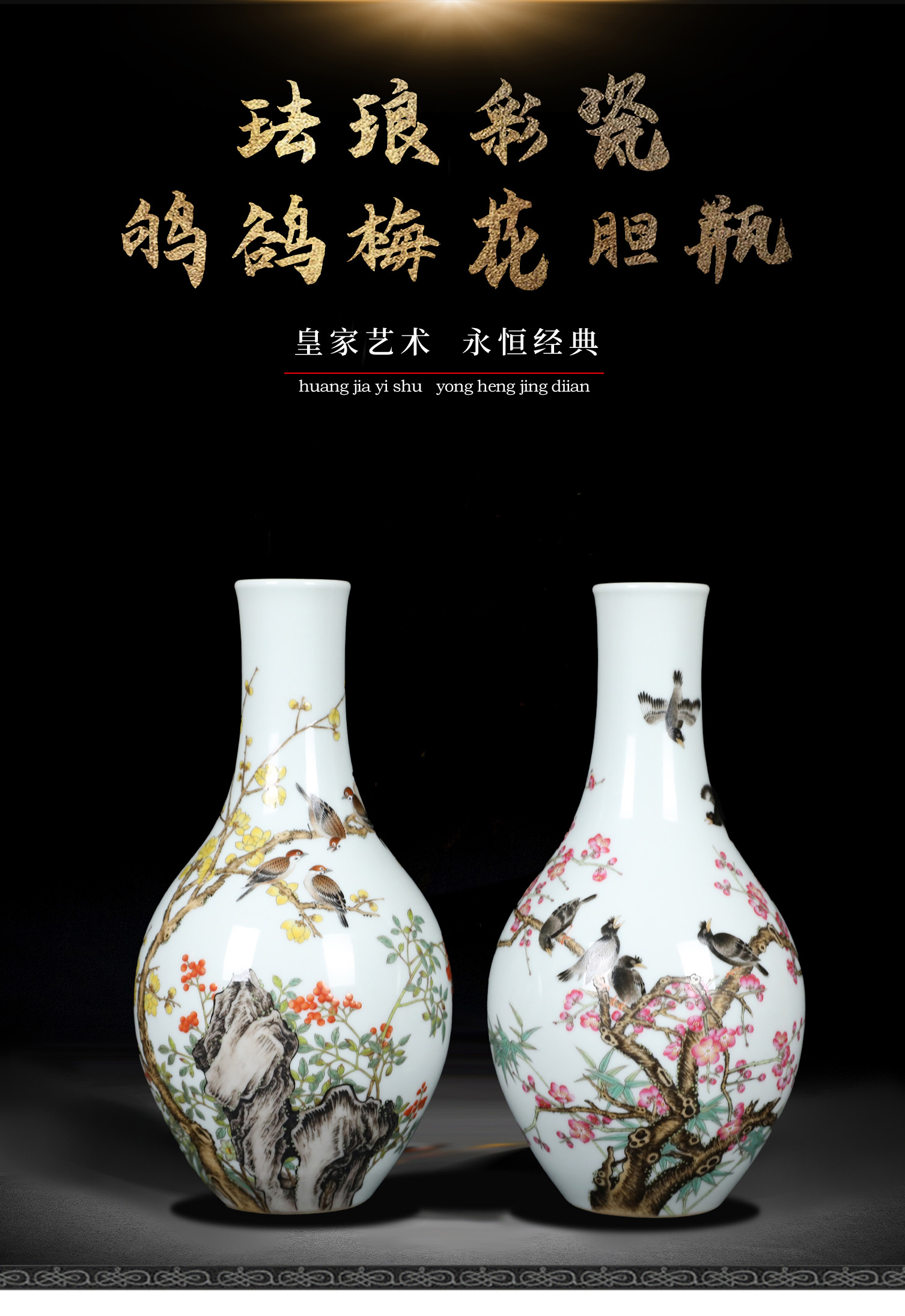 宫廷珐琅彩典藏·王辉督造「鸲鹆梅花胆瓶」 | 台北故宫同款,对瓶典藏 | 可人鸲鹄知春色,雅室生辉