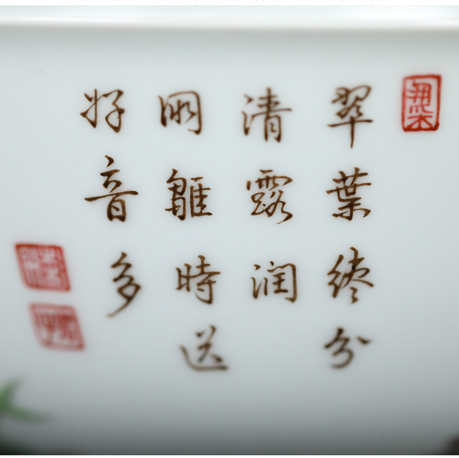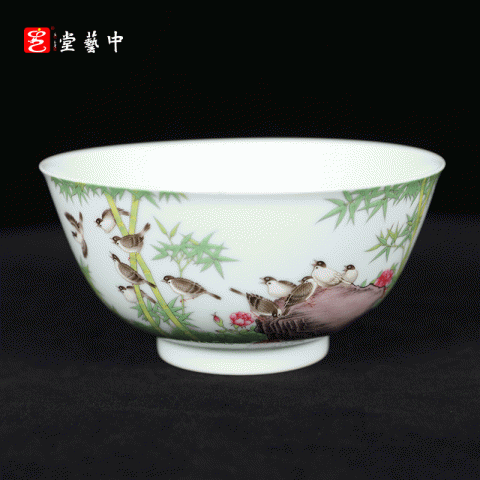 首页 > 瓷器丨内画丨书画 > 瓷器 > 王辉 > 复刻台北故宫雍正官窑·珐琅彩竹雀图碗(一对) | 王辉再现诗书画印四绝珍品 | 竹雀生趣,题句钤印,对碗典藏