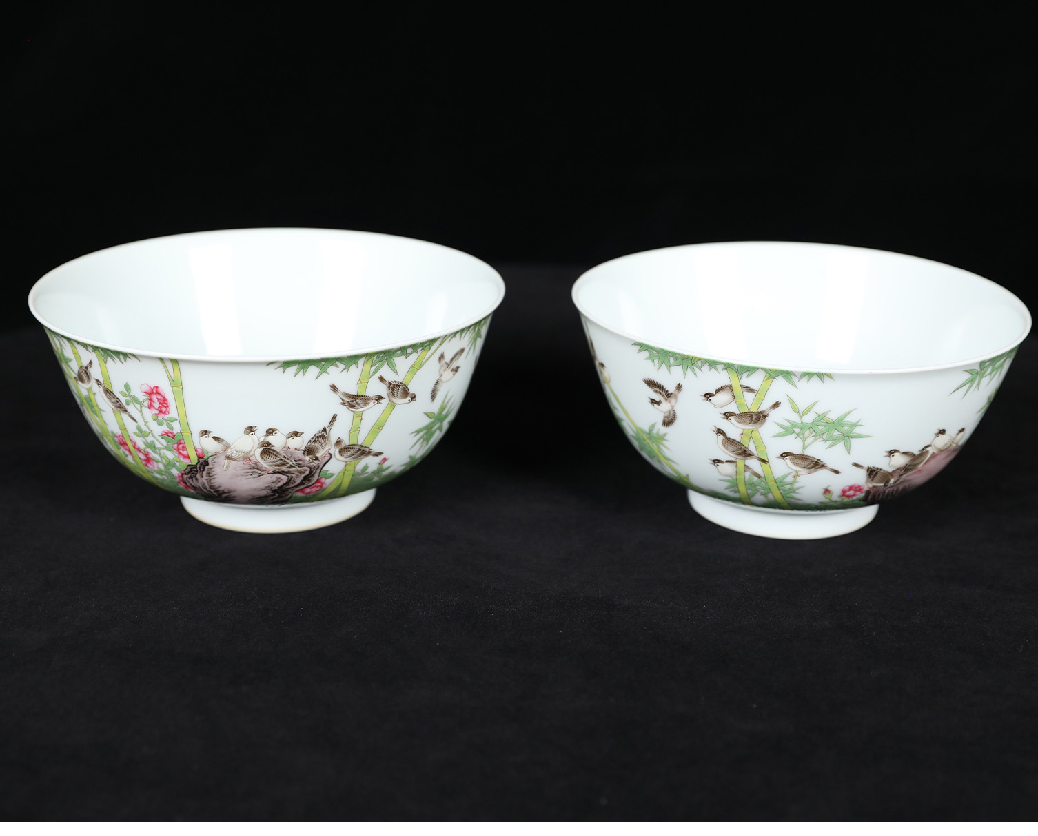 复刻台北故宫雍正官窑·珐琅彩竹雀图碗(一对) | 王辉再现诗书画印四绝珍品 | 竹雀生趣,题句钤印,对碗典藏