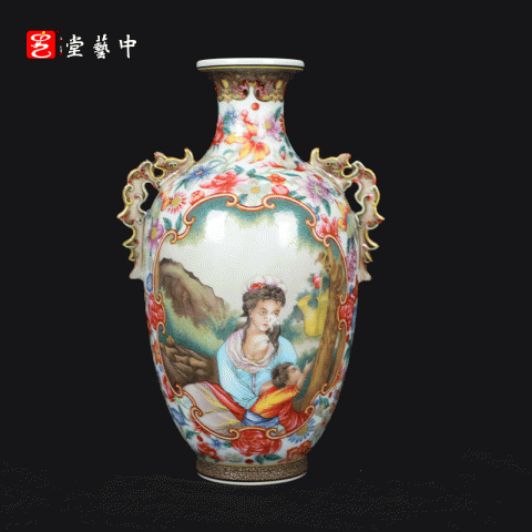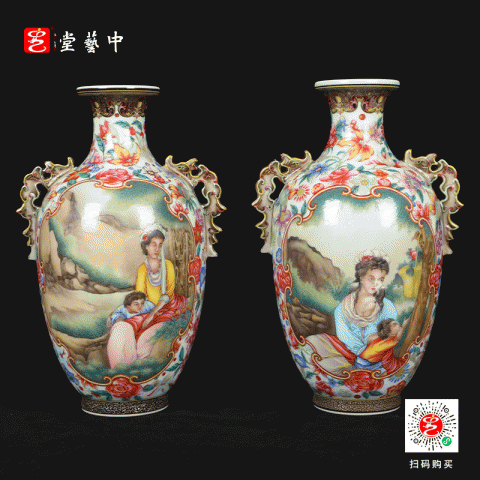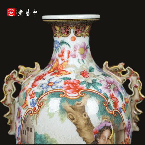 首页 > 瓷器丨内画丨书画 > 瓷器 > 王辉 > 复刻台北故宫乾隆奇珍·珐琅彩西洋人物螭耳瓶 | 王辉督造,黑地百花,开光见奇 | 珍藏一对,纳中西之美