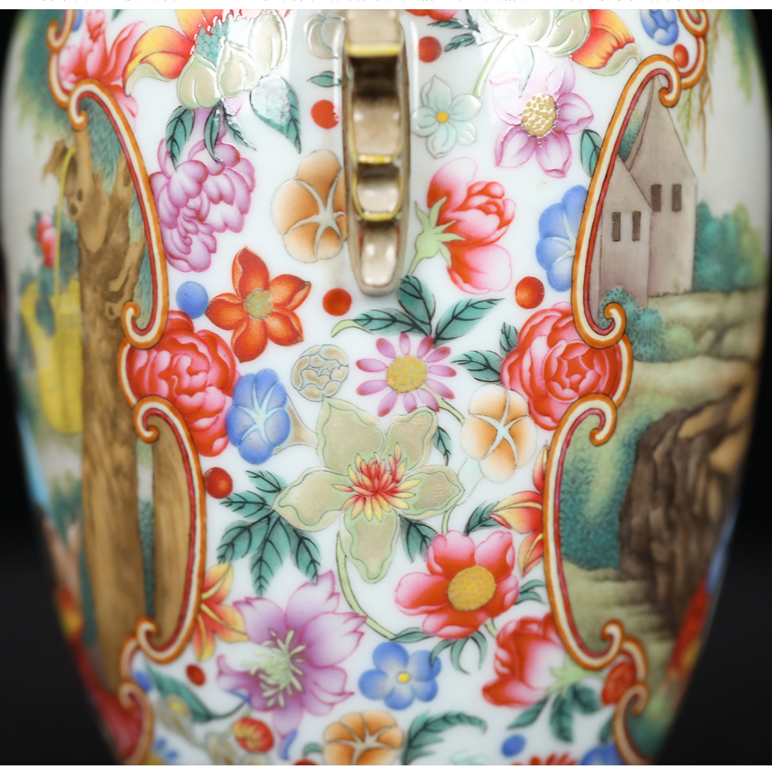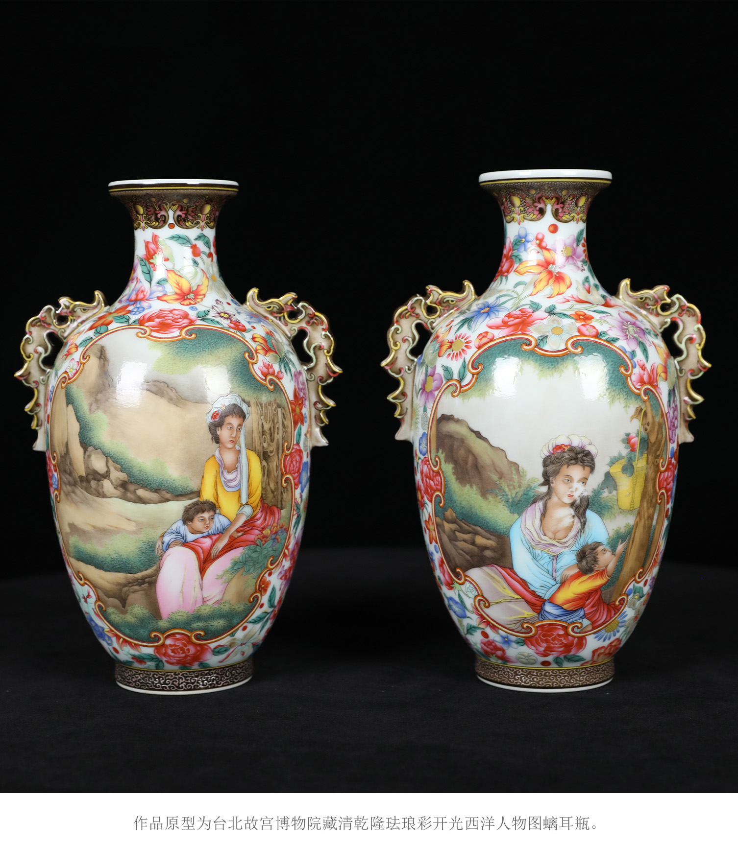 复刻台北故宫乾隆奇珍·珐琅彩西洋人物螭耳瓶 | 王辉督造,黑地百花,开光见奇 | 珍藏一对,纳中西之美