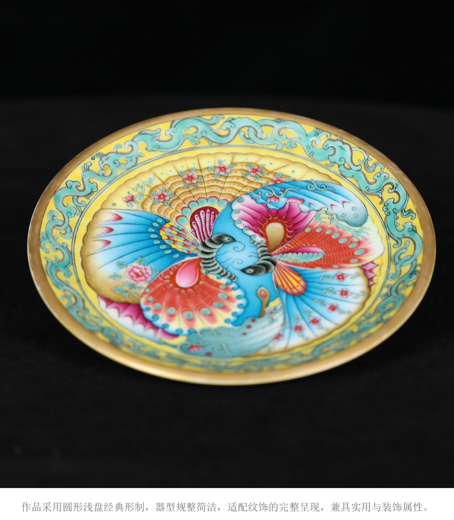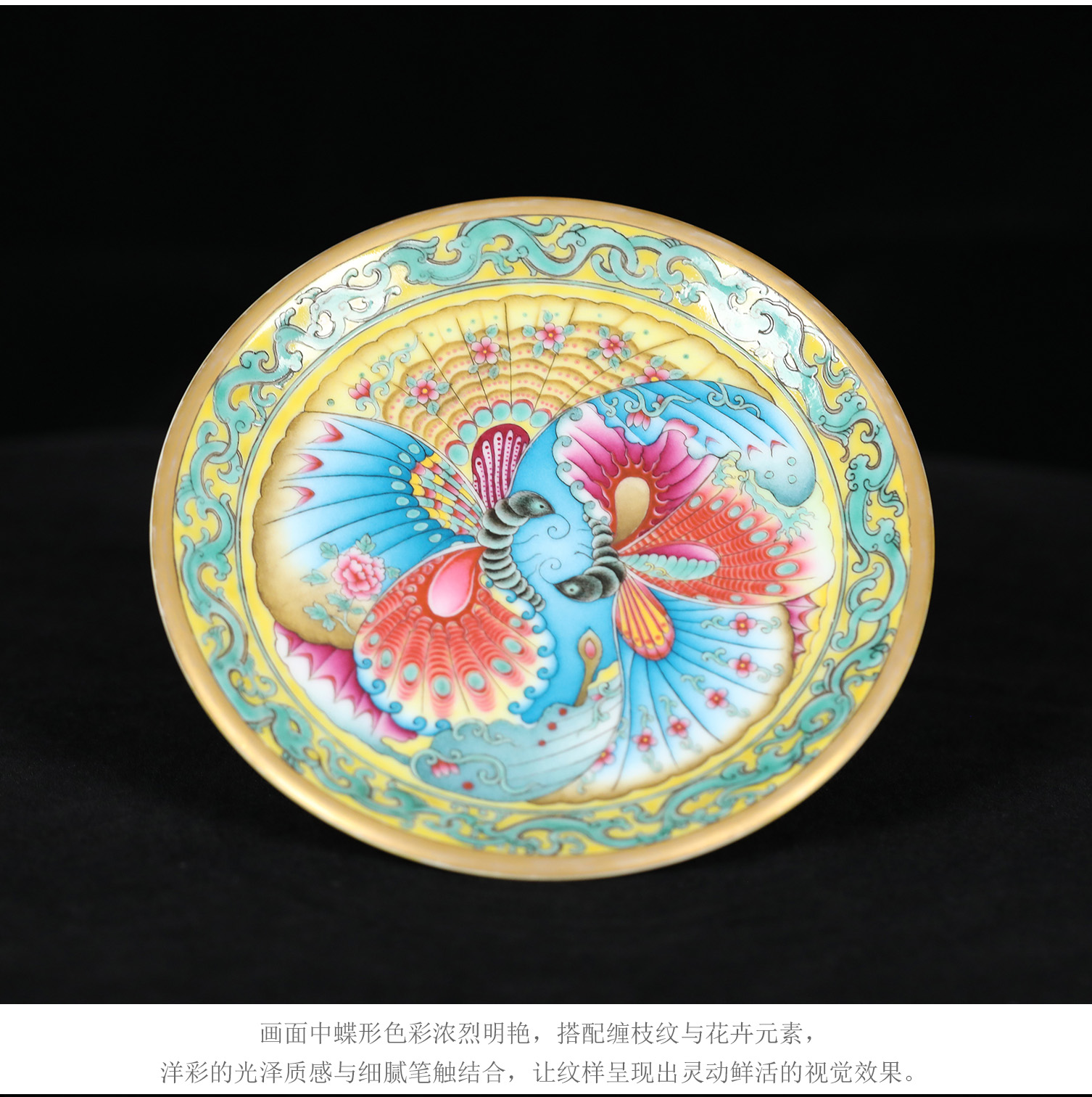 洋彩双碟盘 | 王辉大师珐琅彩雅作,蝶舞翩跹,缠枝曼妙 | 彩绘明艳,盘上生趣